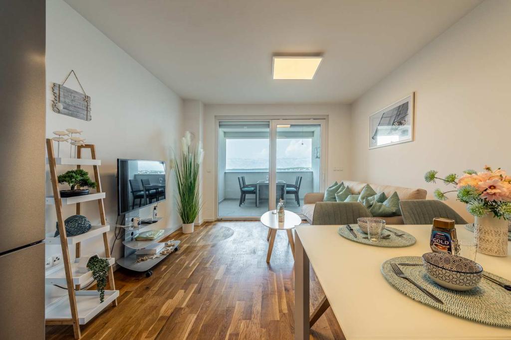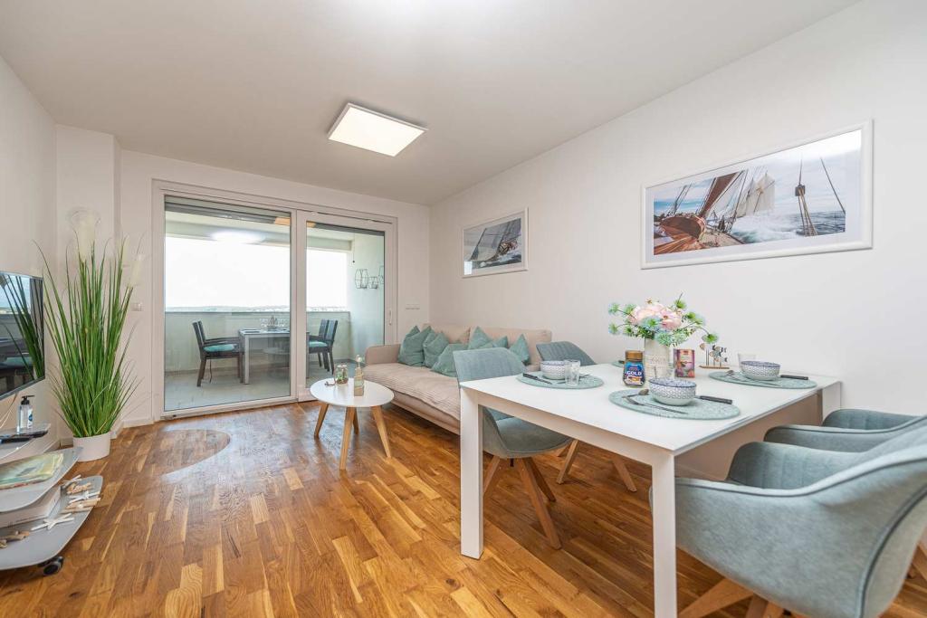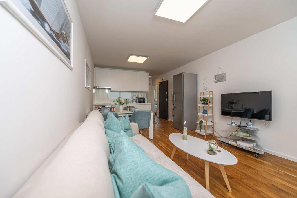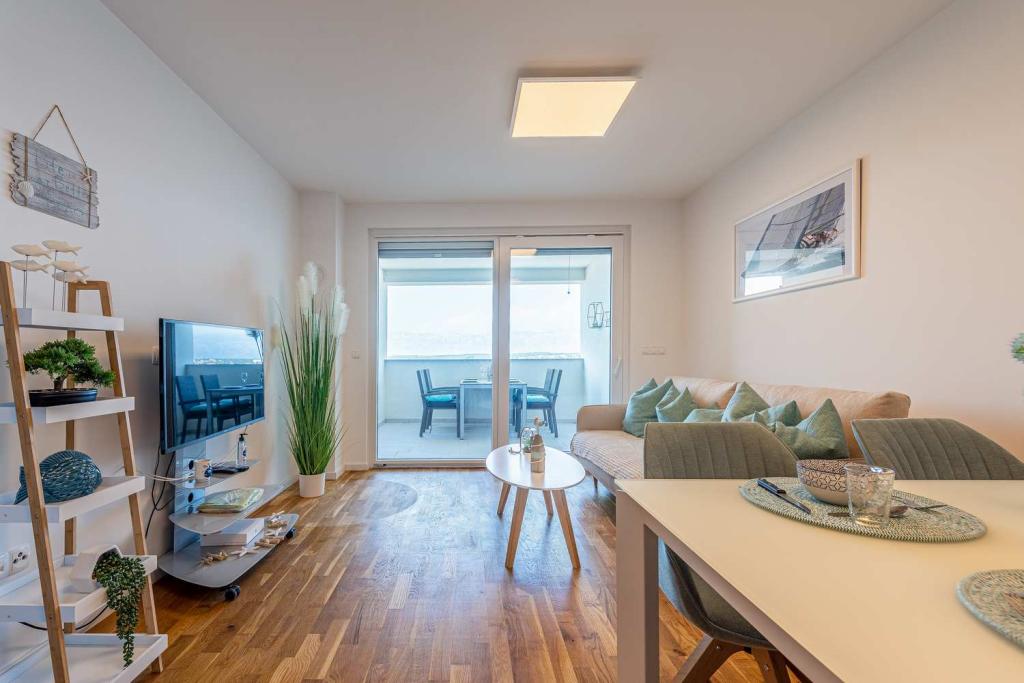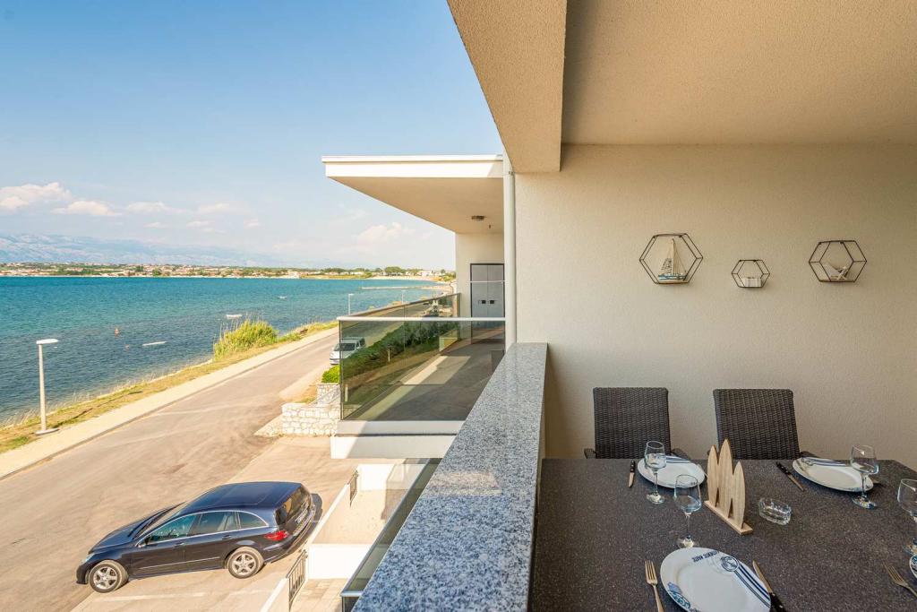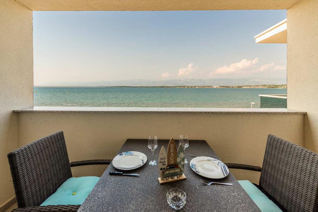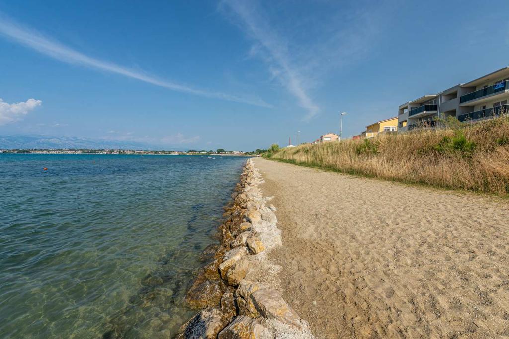 FØRSTE RÆKKE fra havet! 10 meter fra gågadestranden. 5 minutter fra den gamle bydel i Nin. Moderne lejlighed, pænt indrettet, meget veludstyret køkken (opvaskemaskine, brødrister, elkedel, elektrisk kaffemaskine, mikrobølgeovn, køleskab og fryser, ovn, 4 induktionskogeplader. 1 soveværelse med dobbeltseng + 1 soveværelse med 2 senge. bruser og vaskemaskine. Fantastisk havudsigt fra din terrasse.