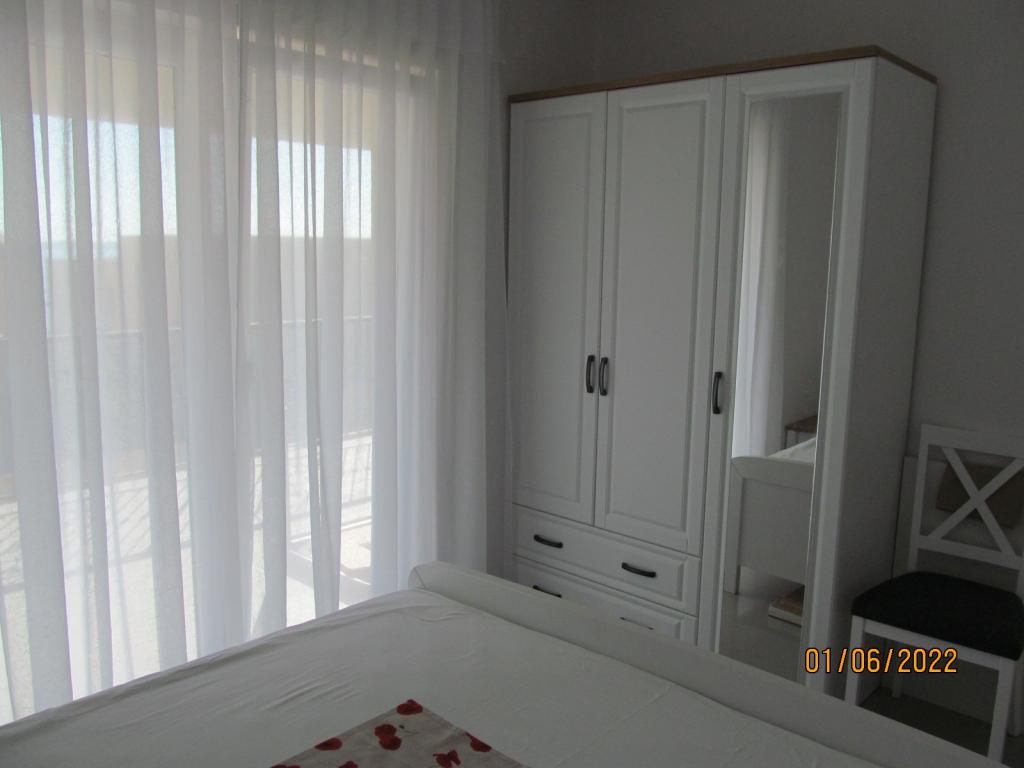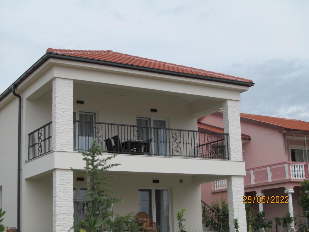 Lejlighederne er beliggende på første sal i et nyt selvstændigt familiehus i rolig gade, med egen parkeringsplads og grønne omgivelser. De har aircondition og WiFi. Huset ligger 40 m fra kysten og stranden. APA1 - 2-værelses lejlighed indeholder to separate soveværelser, køkken med stue, badeværelse med toilet og vaskemaskine samt terrasse på 22 m2. Det ene soveværelse har en dobbeltseng og det andet har to enkeltsenge. I stuen er der sofa, kommode og TV. Der er udsigt over havet fra alle lejlighedens rum. Køkkenet har alt hvad du behøver til madlavning: tallerkener, 4x induktionskomfur, mikroovn, opvaskemaskine, vandvarmer, køleskab med fryser. APA2 - 1-værelses lejlighed indeholder et soveværelse med dobbeltseng, køkken med stue, badeværelse med toilet, vaskemaskine og balkon med havudsigt. I stuen er der sofa, garderobeskab, kommode og TV. Køkkenet har alt hvad du behøver til madlavning: tallerkener, 2x induktionskomfur, mikroovn, vandvarmer, køleskab med fryser.