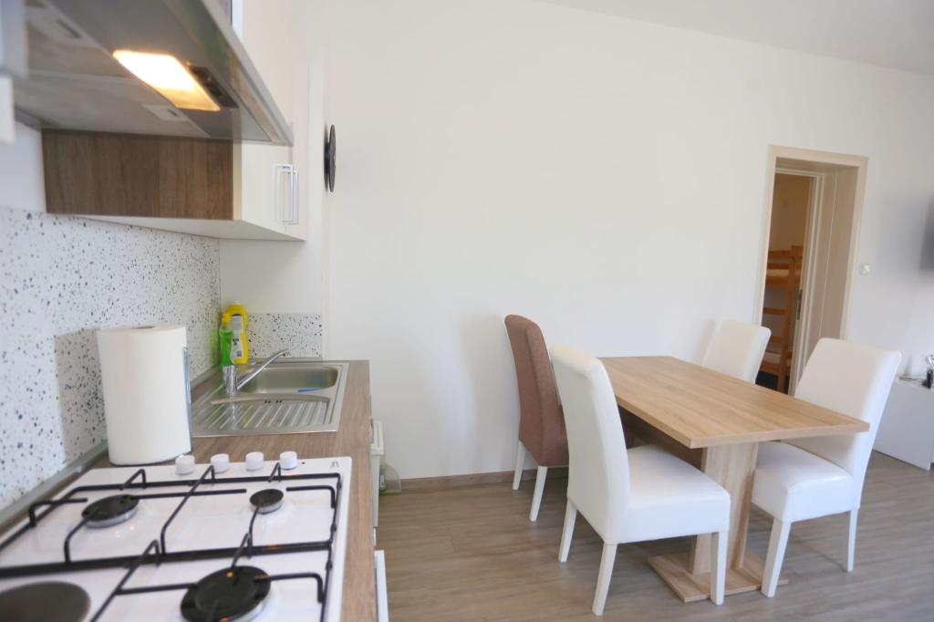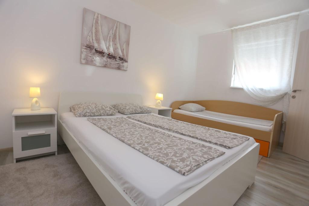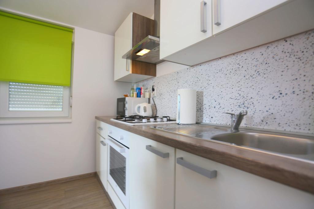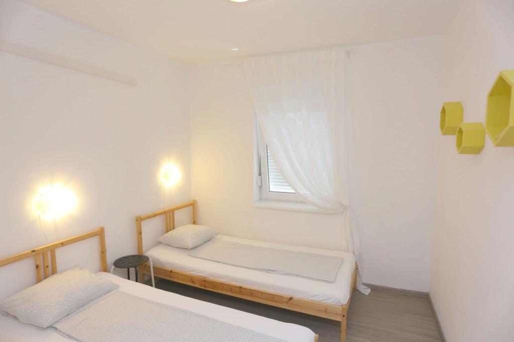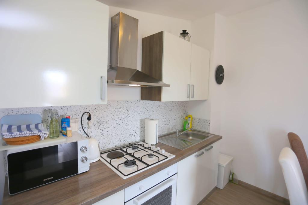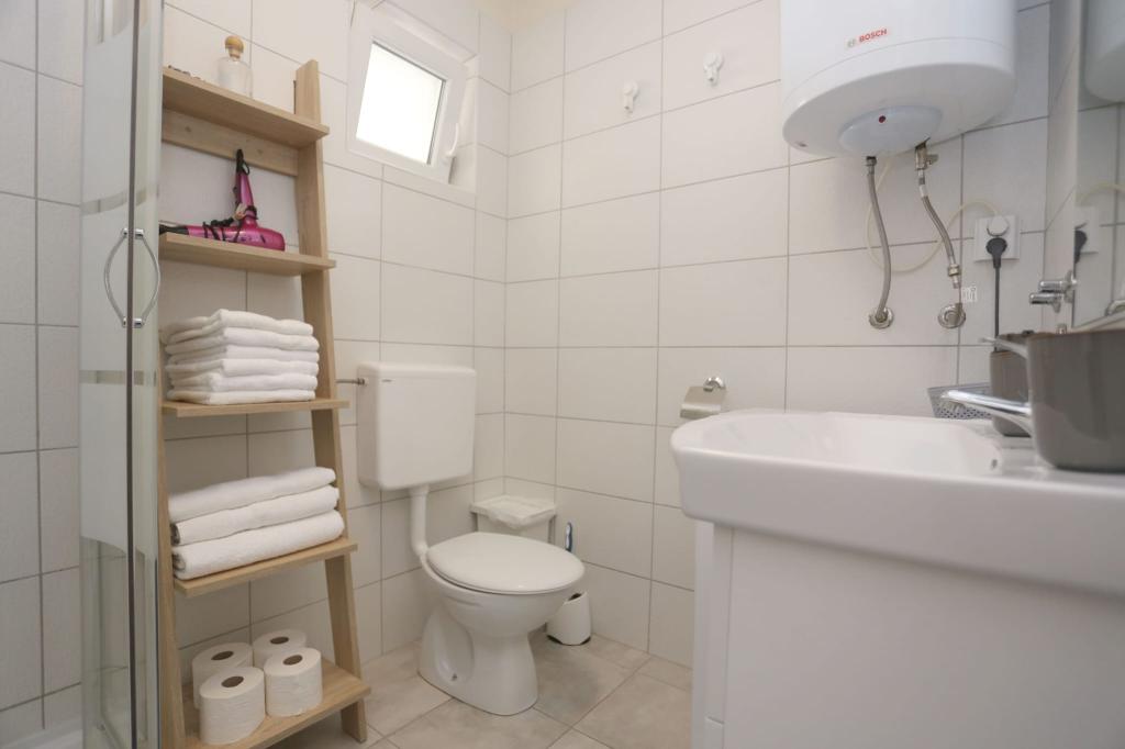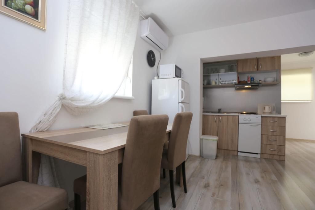 Lejlighederne er beliggende i et hus med i alt 4 boligenheder samt eksisterende parkeringsplads til 6 køretøjer. Der er 10 minutters gang til stranden samt den nærmeste restaurant og butik. Lejlighederne er fuldt møblerede og udstyrede. Wi-Fi internet, brug af udendørs bruser, aircondition, sengelinned, håndklæder. Gæsterne har adgang til en kulgrill og en peka (hvis de ønsker at tilberede måltider på grillen (gradela) eller peka).