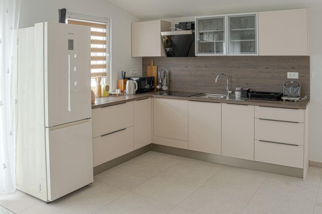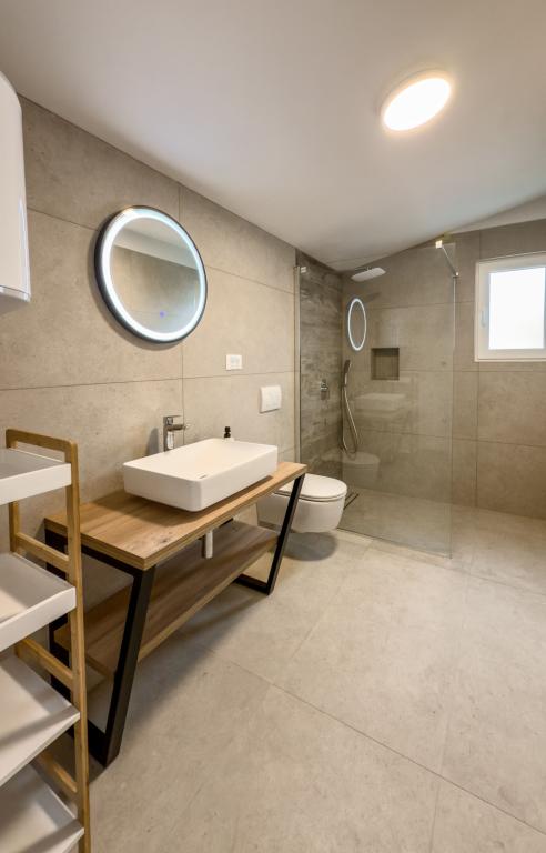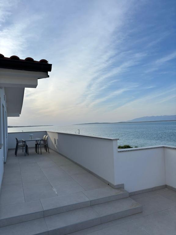 Rummelige, nyrenoverede og fuldt udstyrede lejligheder, beliggende kun 15 meter fra havet. Lejlighed 1 ligger i stueetagen (100 m² inklusive terrasse) og har en privat have, mens Lejlighed 2 ligger på øverste etage (70 m² med en balkon på 50 m²), hvilket gør dem ideelle for familier og grupper af venner. Hver lejlighed har to soveværelser, en stue, et køkken og et badeværelse. Gæsterne har adgang til aircondition, tv og Wi-Fi. Ejendommen tilbyder også privat parkering og en udendørs bruser. Et særligt højdepunkt er de magiske solnedgange og den fantastiske udsigt over Velebit-bjergene.