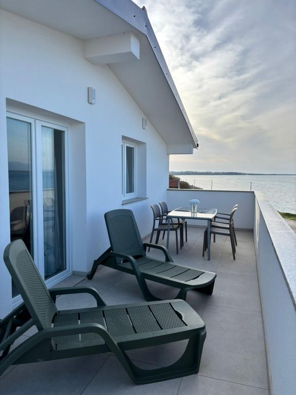 Turistskat er inkluderet i prisen.Rummelige og moderne lejligheder med panoramaudsigt over Nin-lagunen. Indkvartering ved havet Beliggenhed direkte ved havet for maksimal afslapning, badning og gåture langs kysten – uden behov for bil. Privat parkering og udendørs bruser Sikker parkering på stedet og en udendørs bruser – perfekt efter en dag på stranden, før du vender tilbage til lejligheden.