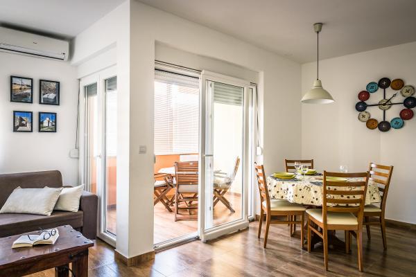 Vi boede hos hr. Nina for første gang og blev positivt overrasket over indkvarteringen...for det første svarer lejligheden bogstaveligt talt til billederne...ren..ryddelig...rummelig og smukt og velindrettet... parkering inde i gården med rampe Køkkenet er udstyret med krydderier, Likvi + svampe og andre rengøringsmidler ... og alle de nødvendige ting til madlavning, retter af høj kvalitet som nye ... brødrister, mixer og opvaskemaskine i køkkenet ... komfortable senge med hukommelse madrasser og en kæmpe opbevaringsplads til tøj....badeværelset er bare rummeligt med en vaskemaskine, der fungerede hver dag...en dejlig lukket terrasse selvom det var varmt på grund af de udvendige forhold at opholde sig...men det er derfor der er et lysthus i gården med en lille skøn have plus grill....strygebræt og strygejern....f.eks. Nino hjertelig og professionel i kommunikationen..Mrs. Albina, der bød os velkommen, var også varm og hjælpsom... Kort sagt, vi følte os som hjemme, bortset fra at vi også havde en strand 50 m fra lejligheden... Kraljičina strand ligger ca 4 km,,. Positive anbefalinger