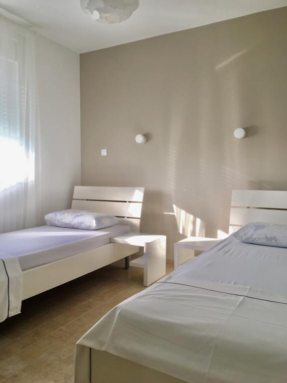 Lejligheder i centrum af Vrsi-Mulo med udsigt over havet og stranden, der er kun 50m. Moderne lejlighed med to soveværelser med private badeværelser, stue, fuldt udstyret køkken og en overdækket terrasse. Muliggøre brugen af Internettet. Velegnet til 4 personer med mulighed for en ekstra seng til børn. Værftet er indrettet til afslapning i skyggen, bruge en grill og parkering.
