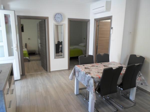 Meget venlige og venlige ejere. De tog sig af alt som nødvendigt. Jeg anbefaler for familier med børn. Lejligheden er ny, topp udstyret med en sådan måde, at du næsten ikke behøver at bære noget. Stranden med små småsten hvor børn kan lege hele dagen er 50m fra lejligheden, butikken er 20m fra lejligheden. Vi var tilfredse, og jeg tror, at vi vil være tilbage.