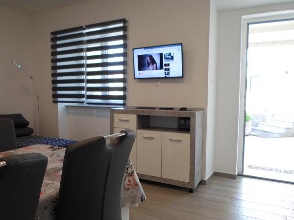 Indtil videre den smukkeste lejlighed, moderne indrettet, med to soveværelser (store, komfortable senge og store skabe, komfortable yogier), badeværelset har en vaskemaskine, køkkenet har også en masse udstyr (næsten mere end hjemme) og en opvaskemaskine. Alle rengøringsmidler ved siden af opvasken, opvaskemaskinen og vaskemaskinen. Ejere super venlige - købte en gave til en søn, der havde fødselsdag i de dage. Lejligheden ligger få skridt væk fra den smukke strand, men lige så langt væk, at der ikke er trængsel. bragt til terrassen. 5 minutter væk er restauranter, konditorier med den bedste is, boder, ikke at der ikke er nogen ... (Njivice) er loven - vi anbefaler :)