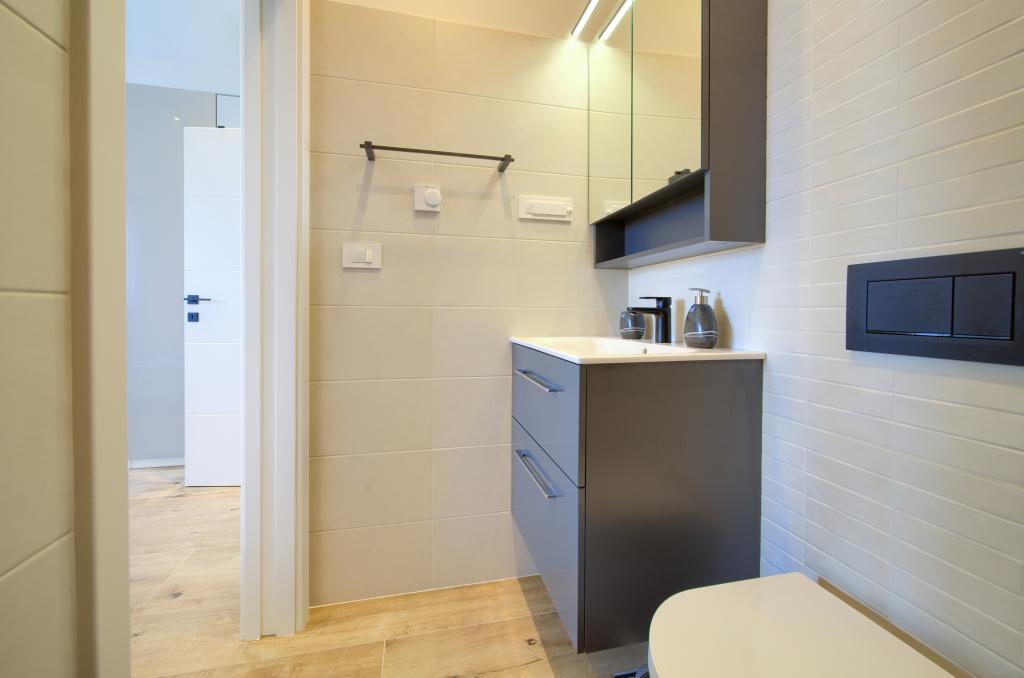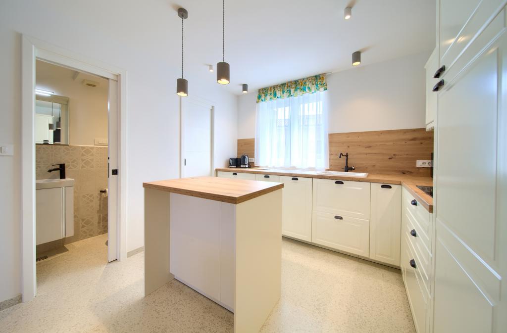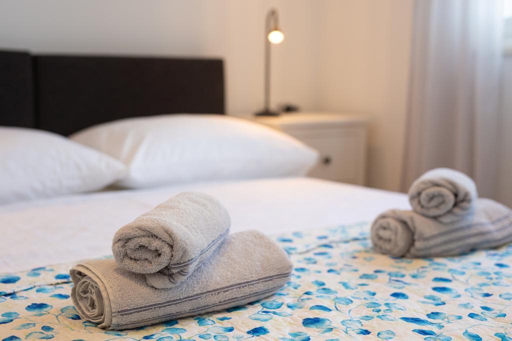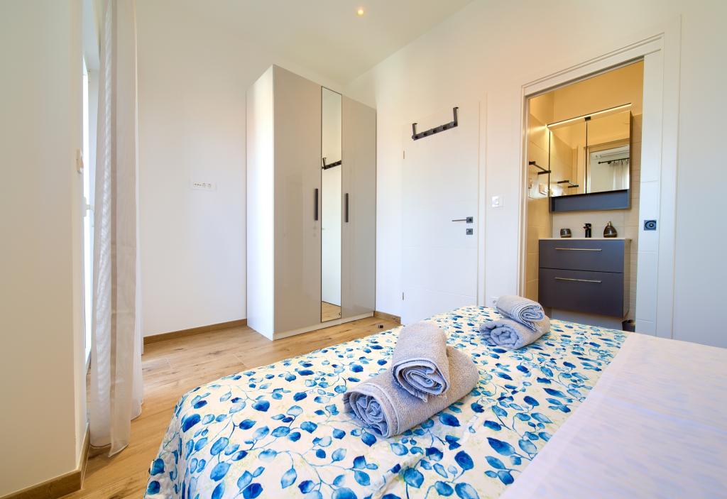 Moderne udstyrede lejligheder i et roligt område, beliggende i byens centrum. Lejligheden er i to etager med et samlet areal på 70m2. På første sal er der soveværelser, hver med eget badeværelse. I stueetagen er der et rummeligt køkken med stue og et lille toilet. Ejendommen ligger 2 minutters gang fra stranden, butikker og centrum. Det samlede areal er 70m2. Parkering til tre biler er placeret inde i ejendommen og er gratis. Kæledyr er tilladt efter forudgående aftale og under konstant opsyn af ejeren.