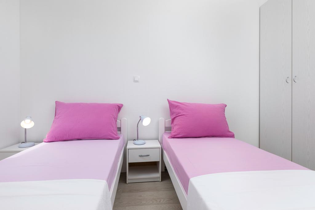 Læs mere IndkvarteringsenhederHvis du beslutter dig for at foretage en reservation, skal du betale et forskud på 10 % af den samlede pris for boligen. Det resterende beløb betales ved ankomst til lejligheden. Det ideelle ankomsttidspunkt er kl. 14.00, mens afgang er obligatorisk kl. 10.00. Prisen i prislisten refererer til brugen af lejligheden for 1 nat og antallet af faste senge i lejligheden. Prisen for at bruge en ekstra seng er 5 euro/nat.