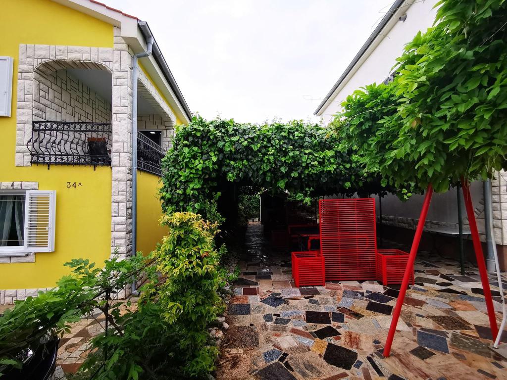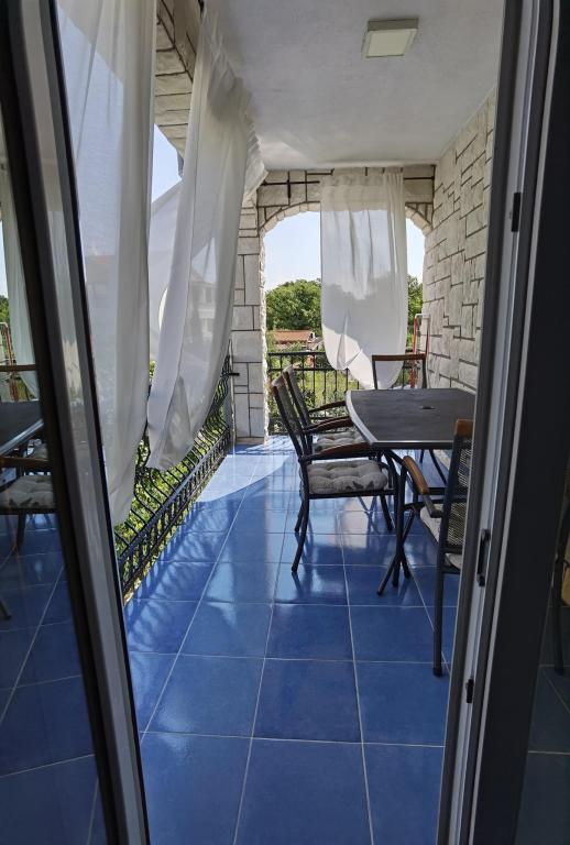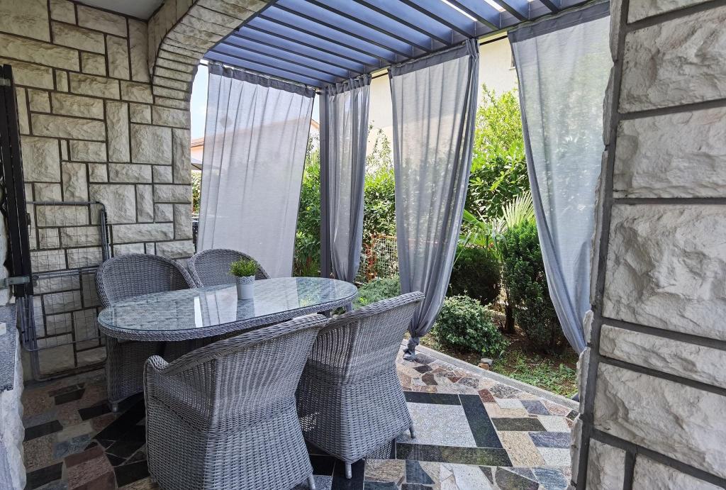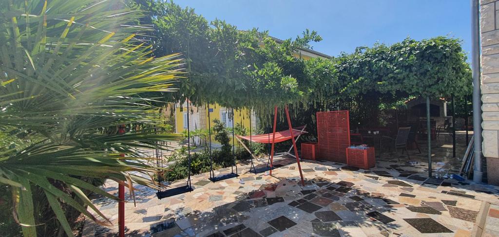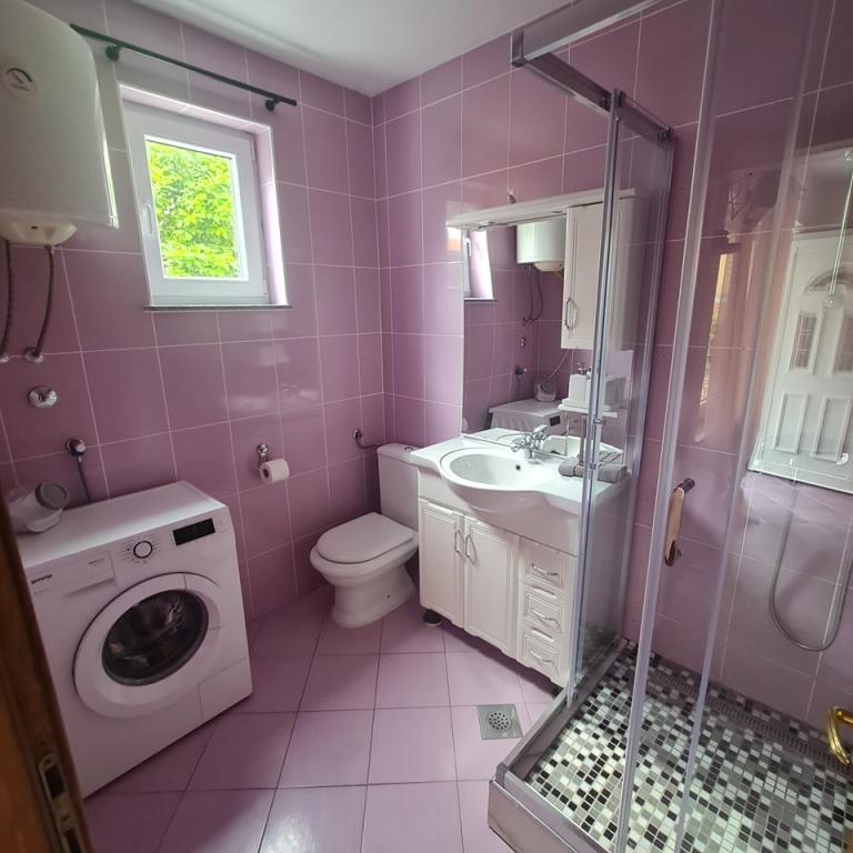 Huset ligger i en rolig del af Njivica på øen Krk, 500 m fra havet og er meget velegnet til en familieferie. Den er især velegnet til børn, fordi der er indhegnet gårdhave og gynger. Der er en stor parkeringsplads foran huset med et hegn, så din bil vil være sikker. Der er også en stor have og en udendørs terrasse, hvor du kan nyde en grill og skygge hele dagen. Lejlighedens indhold: soveværelse med dobbeltseng køkken (induktionskomfur, vask, mikroovn, køleskab med fryser, elkedel, kaffemaskine) aircondition stue med sovesofa til 2 personer badeværelse (med vaskemaskine) balkon eller terrasse med bord og stole til afslapning og nydelse