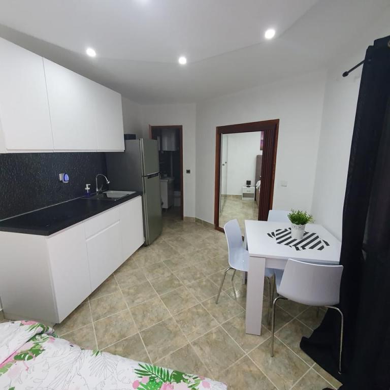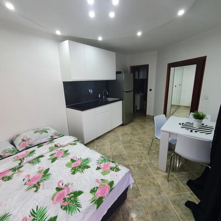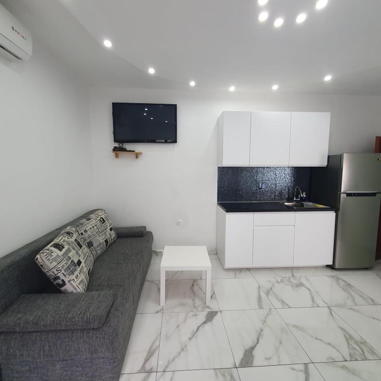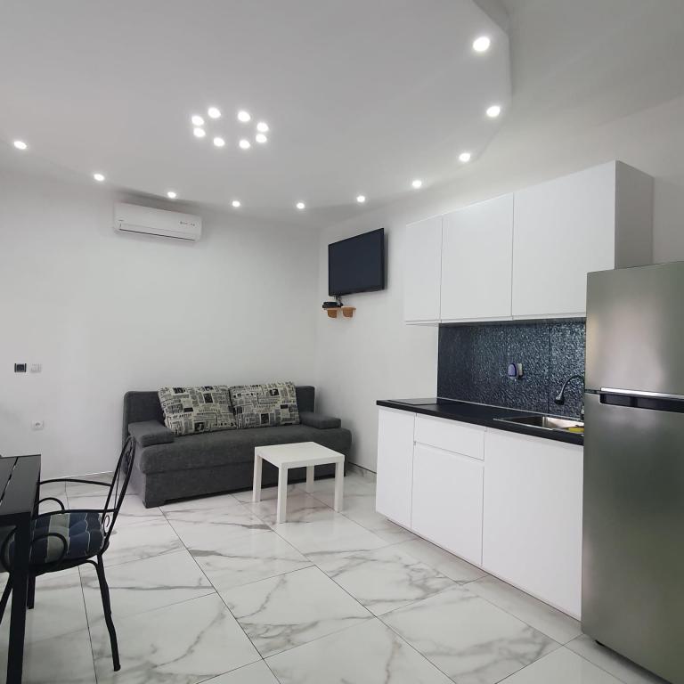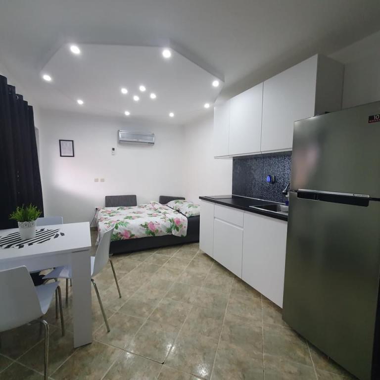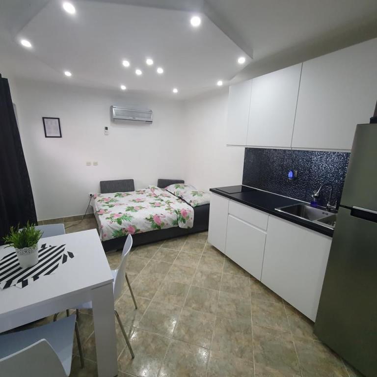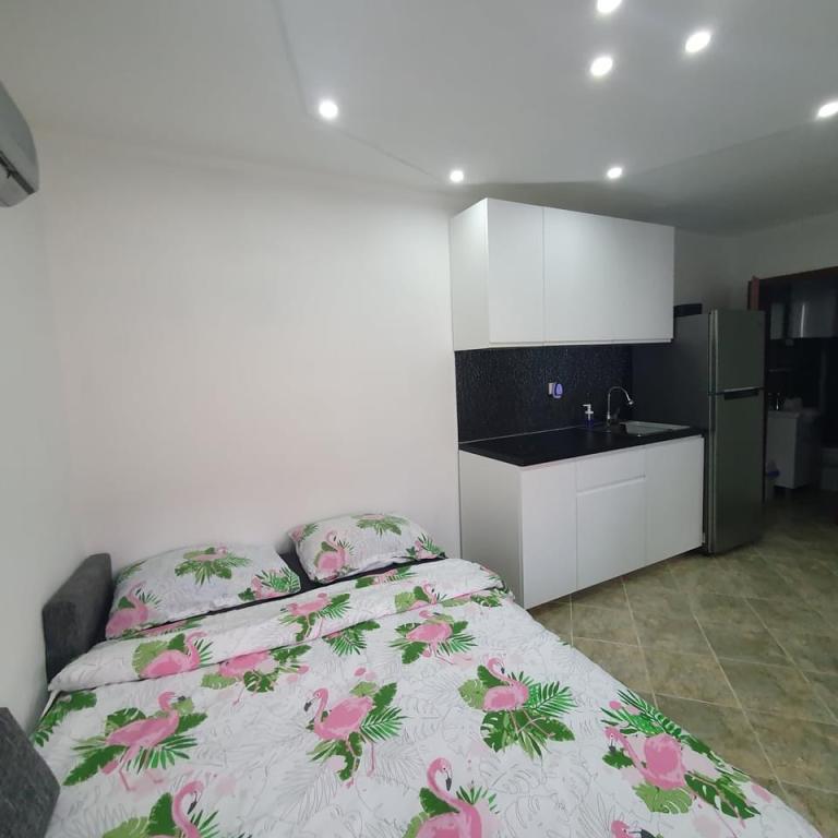 Det er meget langt fra havet. Det er svært at komme til. Ejeren bad om vores ID, før vi overhovedet pakkede ud, og vi skulle betale. Vi støvsugede sofaen i samme rum som køkkenet, der var meget støv. Vi var nødt til at rede sengen. Brusekabinen på badeværelset var ved at falde fra hinanden, delen mellem vasken og kabinen var mildest talt ulækker. Kanten af kabinen var det også. Garderobeskuffen på badeværelset var ved at falde fra hinanden. Der er ingen stikkontakt i køkkenområdet, jeg kunne kun koge vand i vindueskarmen.