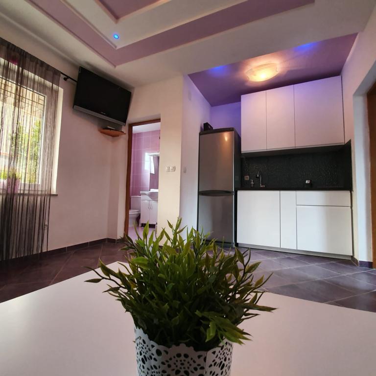 Læs mere IndkvarteringsenhederHvis du beslutter dig for at bestille overnatning, skal du betale et forskud på 2 nætter, og resten betales ved check-in. Gæster skal fremvise billed-id ved indtjekning. Indtjekning er fra kl. 14.00 og check ud indtil kl. 10.00. Gæster bedes informere overnatningsstedet Apartmani Blazevic om det forventede ankomsttidspunkt på forhånd. Det er ikke muligt at holde polterabend og lignende fester i dette anlæg. Der er gratis privat parkering på stedet. Trådløst internet er tilgængeligt overalt på anlægget og er gratis. Boligskatten er inkluderet i prisen for opholdet.