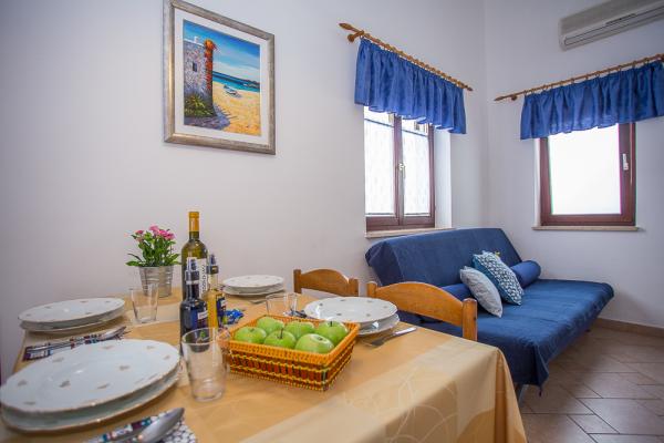 Læs mere IndkvarteringsenhederDepositum 300 euro. Ved afbestilling refunderes depositummet ikke. Prisen inkluderer alt: ophold, parkering, registrering, turistskat og alle andre afgifter, aircondition, WiFi, rengøring, håndklæder (undtagen strandhåndklæder), elektricitet, varmt og koldt vand. Maksimalt antal gæster: Blue Sky: 4 (et badeværelse) Bonaca: 5 (to badeværelser) Nautika: 6 (to badeværelser) Ankomst efter kl. 16:00 Afgang før kl. 10:00