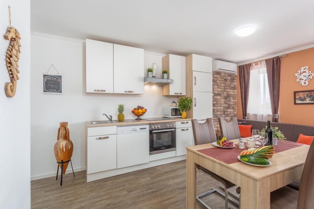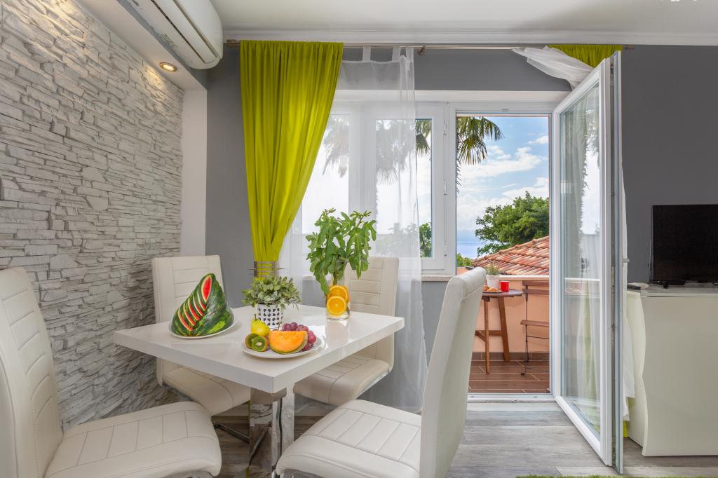 På en af de smukkeste øer i det nordlige Adriaterhav, på den magiske ø Krk, venter den uopdagede naturskønhed på dig. Sandstrande, olivenlunde, grotter, promenader, vandre- og cykelstier, autentisk måneplateau, ridning. Omgivet af Adriaterhavets bølger i skyggen af rig vegetation og med en udsigt, der tager pusten fra alles, ligger Njivice. Hvis din filosofi er, at ferie er for hedonisme, er du på det rigtige sted. Vælg en af vores to lejligheder og nyd freden og roen ved familieindkvartering. Tæt på en stor strand er havet rent. Attraktiv beliggenhed med masser af indhold for alle aldre (strandcocktail, ridning, zip-line). Tæt på butikker, centrum, restauranter. Sikker parkering, aircondition, wifi. Havudsigt, swimmingpool i haven med palmer og udendørs køkken med grill. Vælg en af de to lejligheder i dag, og føl dig hjemme. Vi respekterer dit privatliv og står altid til din tjeneste.
