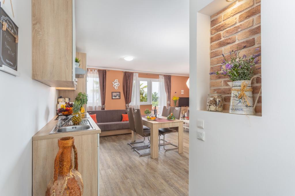 Venlige værter, der bød os velkommen med en afkølet appetitvækker efter turens hede, med kolde drikkevarer i køleskabet og slik, hvilket var dejligt for børnene. Lejligheden er smukt indrettet, sengetøj og håndklæder dufter godt, og alt er rent. Haven er dekoreret med blomster, palmer og slået græs. Med en pool og grill, som vi virkelig har brugt til fulde, med en smuk udsigt over havet og en vidunderlig solnedgang. To minutter til stranden med naturlig skygge tilpasset børn, en park 10 minutter væk, en ny promenade langs havet til Njivice centrum. Værterne overraskede os med middag og en flaske vin. Under alle omstændigheder mere end forventet. En dejlig ferie og et sted vi helt sikkert vender tilbage til.