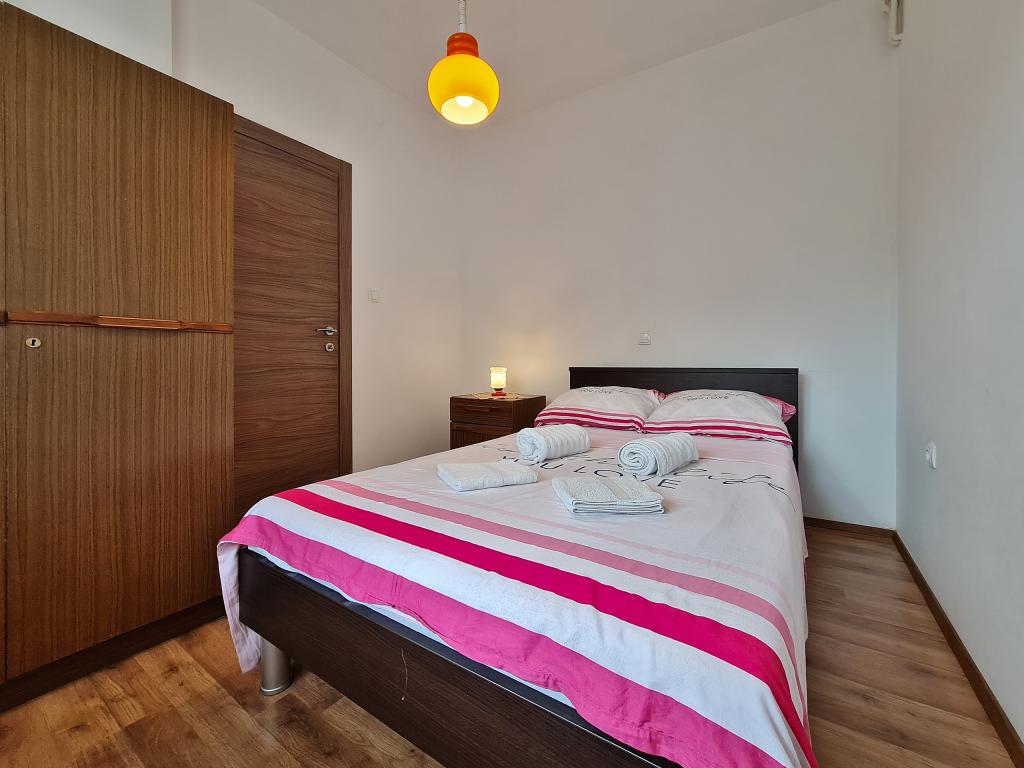 Turistskat er inkluderet i prisen.Et godt sted at slappe af, lejligheden er ren og har alt hvad du behøver for at fungere, ejeren, Darko, er sød og venlig, han tager sig af sine gæster, selvom der er en sprogbarriere. Man går ned ad bakke til stranden, men returen er desværre op ad bakke. Det er ærgerligt, at parkeringspladsen ved siden af lejligheden ikke har tag, for bilen er som en stegepande, og det ville også være rart med sikkerhed på trappen (en låge), så børn eller dyr kan' t klatre ned (eller falde) uden opsyn af voksne (men det er en detalje). Der er ingen ekstra gebyrer for kæledyr, hvilket gør lejligheden endnu mere attraktiv. Samlet set anbefaler jeg stærkt denne lejlighed.