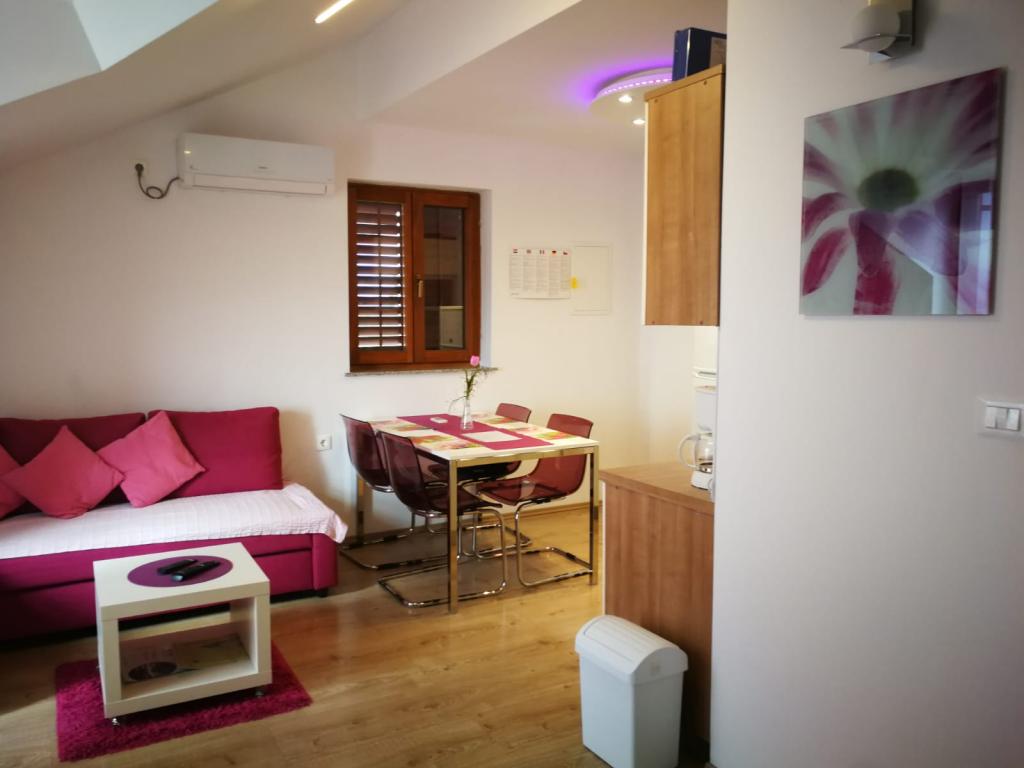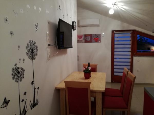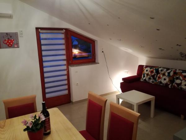 Lejligheder moderne indrettede, funktionelle med terrasser med en fantastisk udsigt over havet. Ejeren svarer hurtigt og meget specifikt til nyhederne. På stedet ejeren meget gæstfri og nice. Parkeringspladser for hver lejlighed er nummereret. Til stranden ikke langt fra den stejle stigning, men udsigterne kompensere. Stenig strand, på en meget lang strækning kan alle finde et sted for sig selv. Til byen omkring 1 km en smuk sti ved havet - der er mange attraktioner, caféer, en smuk havn foret med hvid sten, i år er der koncerter og andre kulturelle arrangementer arrangeret der. I området mange interessante steder at besøge - Krk, Vrbnik, Baska, Punat, Malinska.