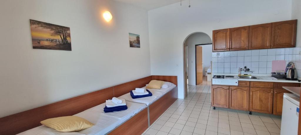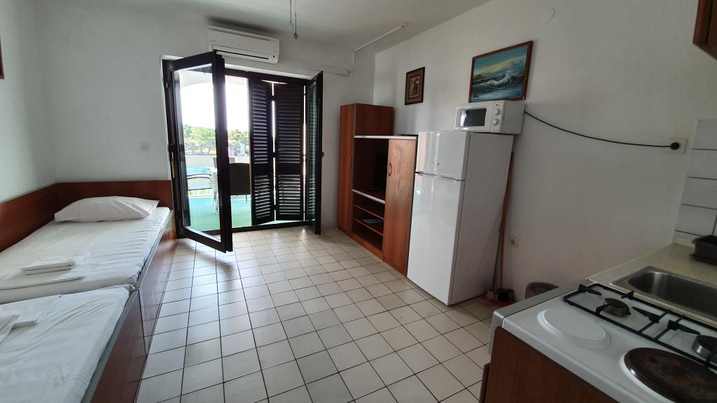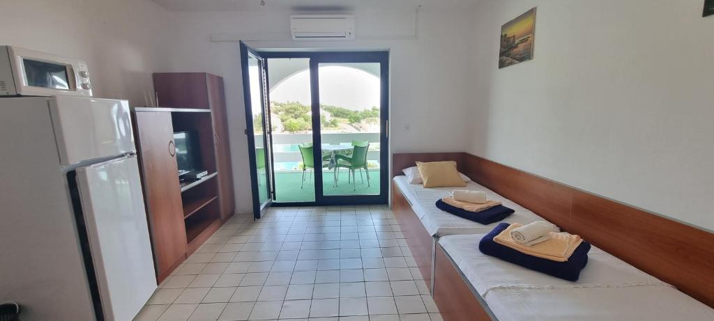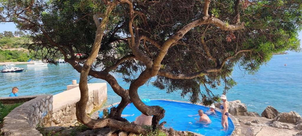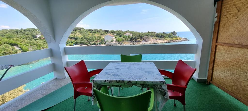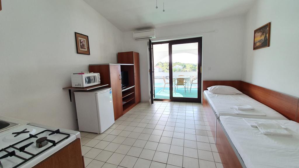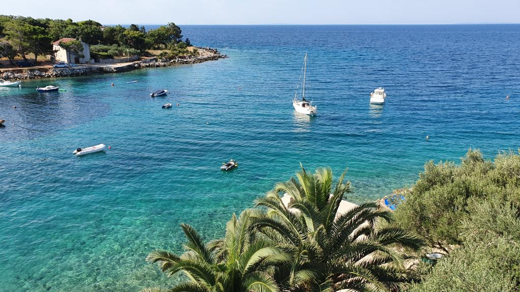 Fuldt og moderne udstyrede lejligheder i det grønne område på øen, beliggende i første række med en smuk udsigt over havet. Anlægget ligger 8 km fra byen Novalja. En sandstrand til venstre for bygningen, en betonstrand foran bygningen med swimmingpool og 5 min. gå store sandede. Fortøjning til både, stor grill, privat parkering og privat strand. Mulighed for at leje hele bygningen uden for sæsonen til weekendfester eller fester efter aftale.