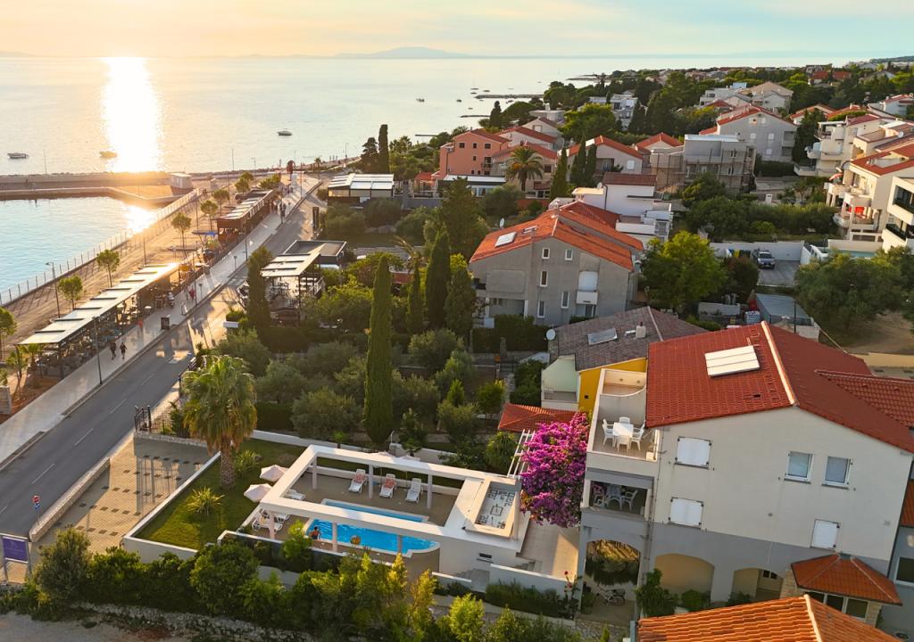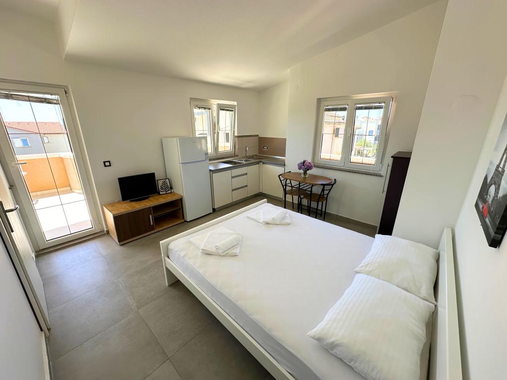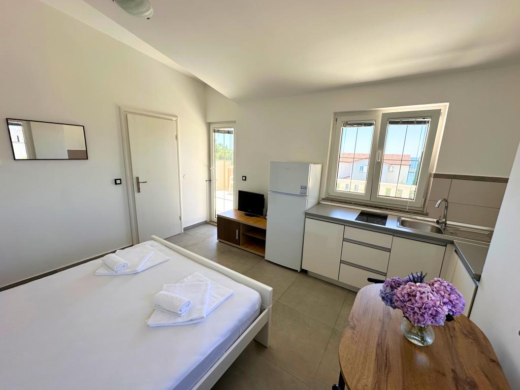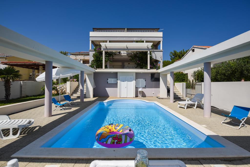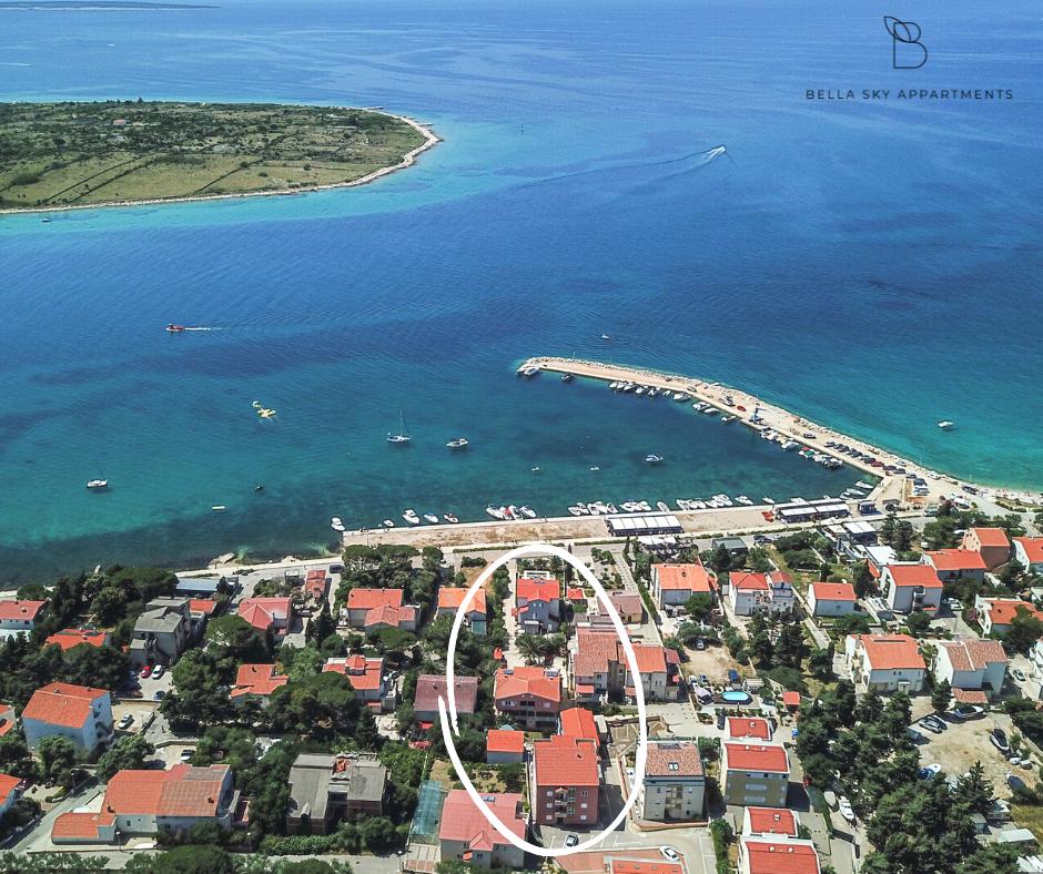 Bella Sky lejligheder ligger ikke langt fra centrum af Novalja, og består af 5 huse med i alt 29 lejligheder. Det første hus ligger lige ud til havet, mens de øvrige huse ligger på række bag det første hus. Lejlighederne har en kapacitet til 2-6 personer, er udstyret som standard, med udsigt over havet, gratis parkering, swimmingpool og plads til socialt samvær og grill i gården. I nærheden af lejligheden er der adskillige restauranter og caféer, samt strande med adskillige ekstra aktiviteter.