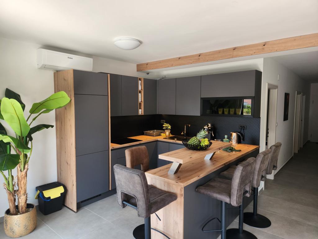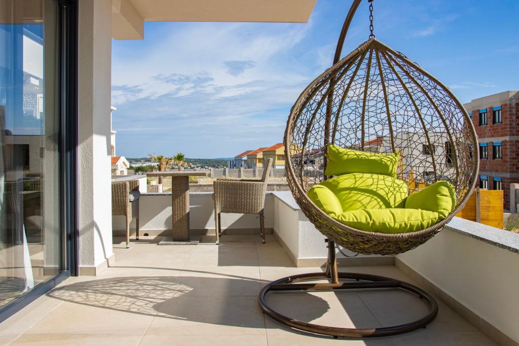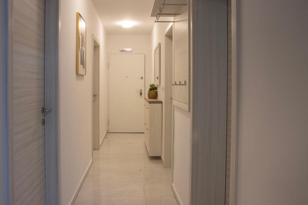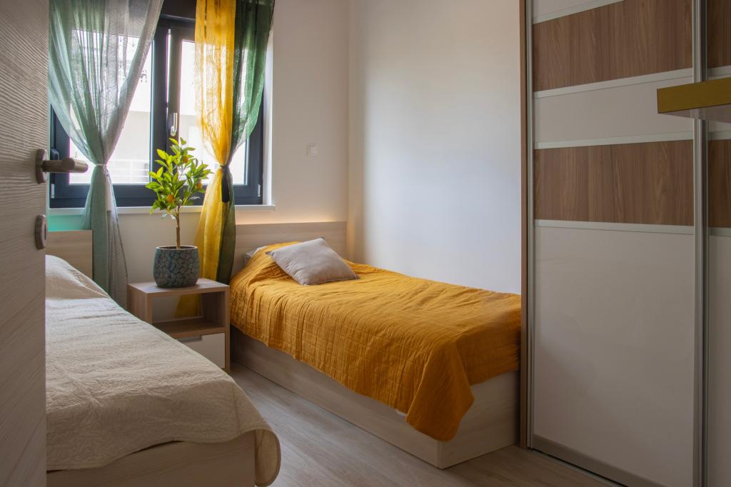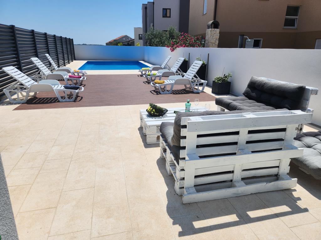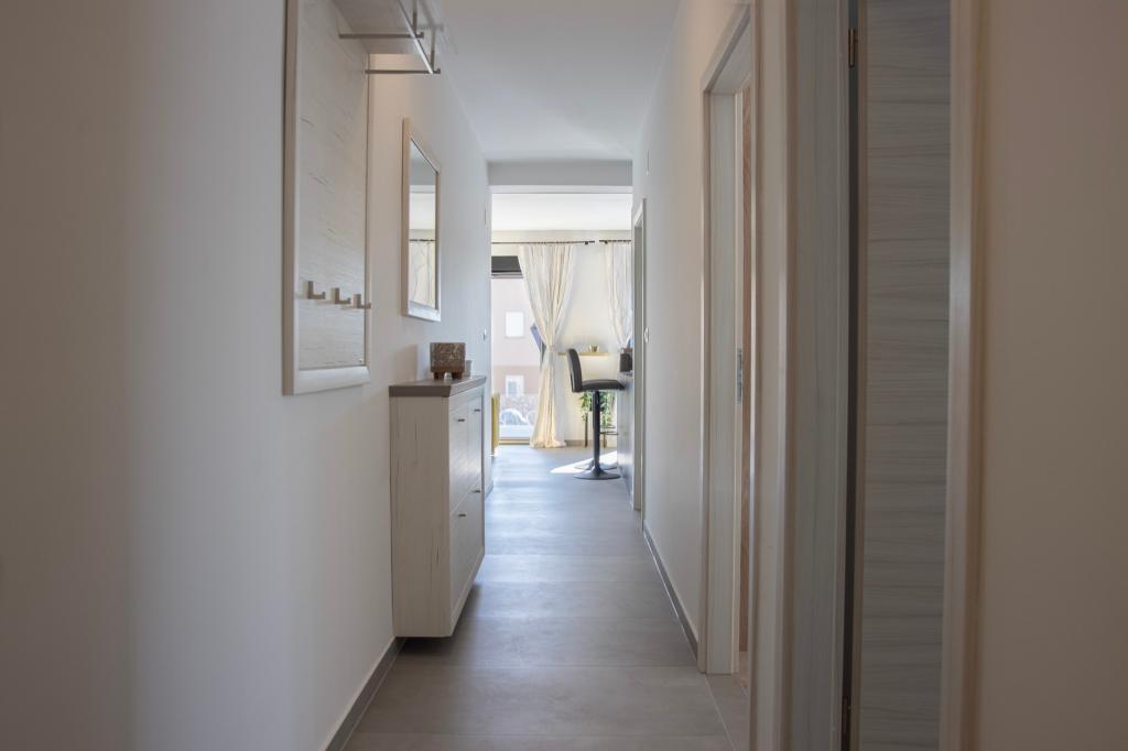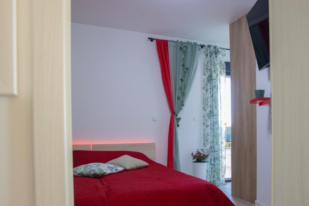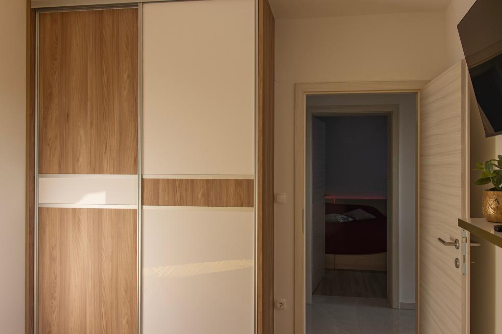 Calma Apartments er beliggende i en rolig beliggenhed i Novalja, og hver lejlighed har sin egen private pool. De ligger kun 900 m fra centrum, så du kan nyde stilheden og være tæt på alle de faciliteter denne by har at byde på. Mindre end 10 minutters kørsel til festivalen - 2,4 km fra spillestedet. Der er en shuttlebus ved busstationen, der går direkte til Zrće-stranden. Lejlighederne er beliggende i en ny moderne bygning (med 8 lejligheder). Vi tilbyder 2 lejligheder, hvoraf den ene er A4+2 og den anden A6+4, hver af disse lejligheder har sin egen private pool. Hver lejlighed har aircondition og har gratis Wi-Fi, SAT/TV, et veludstyret køkken, stue, soveværelser og et badeværelse. Lejligheder til 6-10 personer - plus en person mere hvis nødvendigt - har også alle de samme betingelser. Lejlighederne har smukke terrasser eller altaner med udsigt over havet og byen, udstyret med siddemøbler.