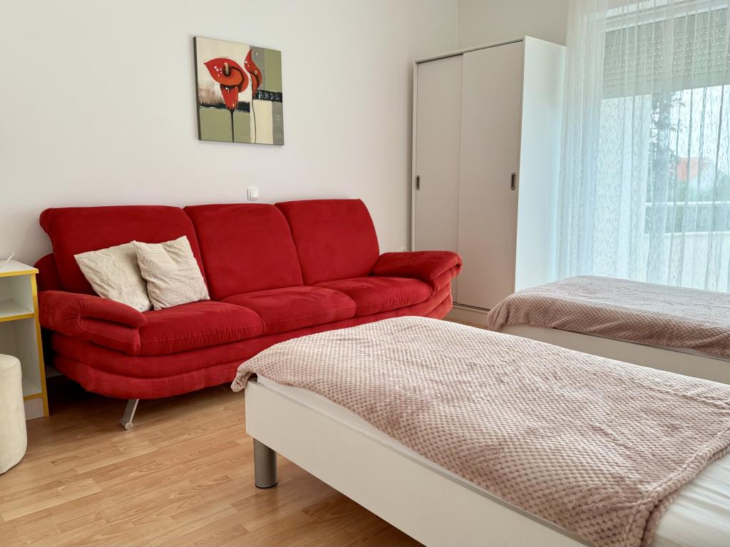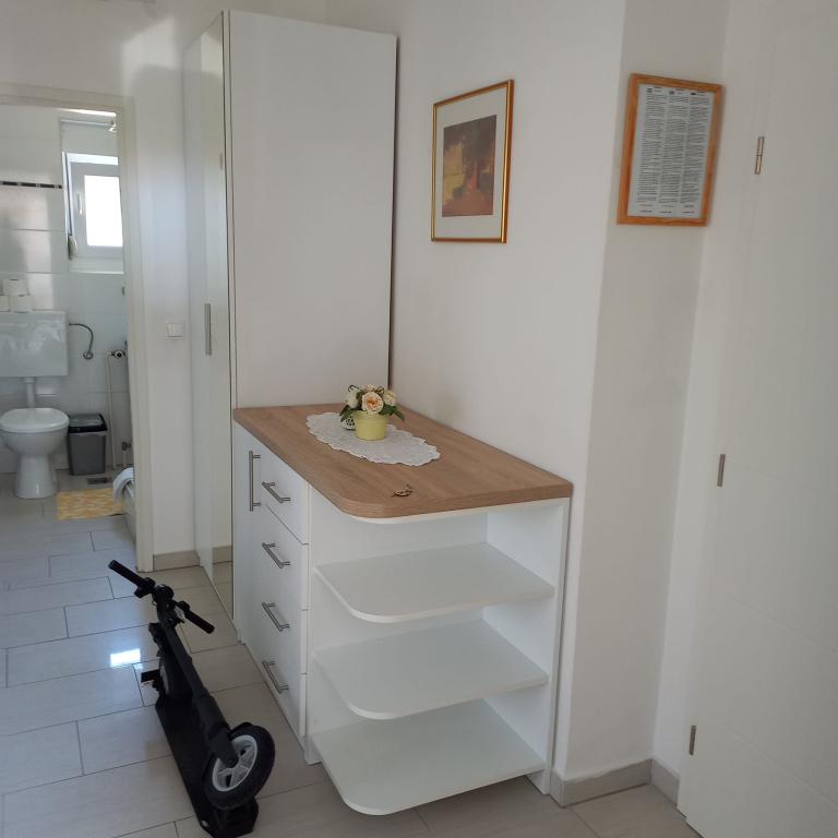Omgivet af grønne områder og en afslappet atmosfære inviterer vi dig til at tilbringe en uforglemmelig ferie i Erika-lejlighederne hele året rundt. Vi tilbyder muligheden for morgenmad og lokale specialiteter: lam, fisk, rød- og hvidvin, olivenolie. Lejlighederne ligger 10 minutters gang fra centrum og 5 minutter fra stranden. Vi håber inderligt, at du vil beslutte dig for at holde ferie i vores lejligheder, som er tilgængelige for dig hele året rundt. Vi håber, at du vil være vores gæster, og at vi vil være dine værter. Erika Škunca-familien