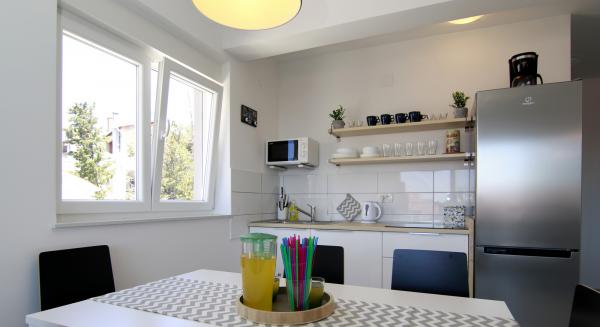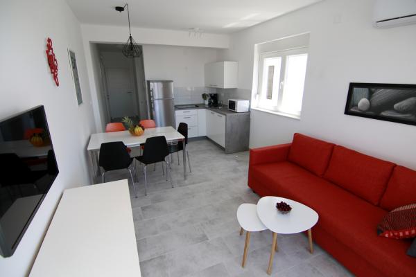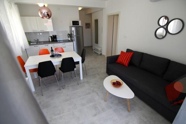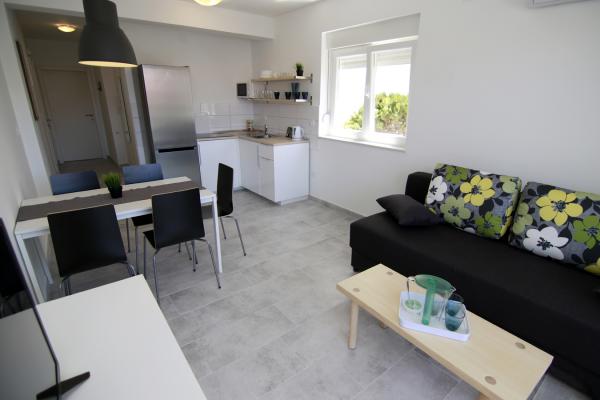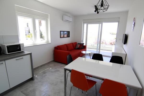 Lejlighederne Luna ligger i nærheden af centrum af Novalja, kun få minutters gang til centrum, butikker, restauranter og alle andre faciliteter, men også til havet. Det er en splinterny bygning og indeholder 4 moderne lejligheder, i hver etage en lejlighed til 5 og 8 personer. Alle lejligheder er udstyret med aircondition, opvaskemaskine, wi-fi, TV / SAT, brusekabine og en stor terrasse. Store lejligheder til 8 personer består af to separate værelser med 3 senge, en seng til 2 personer i stuen og har 2 badeværelser. Mindre lejligheder består af et separat værelse med 3 senge og en seng til 2 personer i stuen. Lejlighederne på øverste etage har havudsigt. Alle lejligheder har sikrede parkeringspladser.
