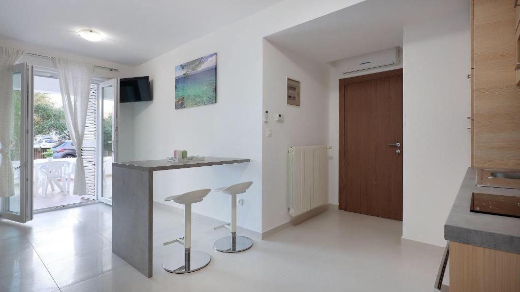 Kære gæster, velkommen til hjemmesiden, hvor vi præsenterer tilbuddet om overnatning i vores lejligheder. Apartments Optima er moderne udstyrede lejligheder, fuldstændig renoveret i 2021. Lejlighedsværelserne har senge i hotelstandard, og køkkenerne er fuldt udstyret med komplet køkkenredskaber. Lejlighederne har sikret parkering, Wi-Fi, TV, aircondition, og standardudstyret omfatter håndklæder og sengelinned. Lejlighederne ligger 5 minutters gang fra centrum og stranden. Der er butikker og restauranter i nærheden af bygningen, og lejlighederne ligger 500 m fra centrum af Novalja.