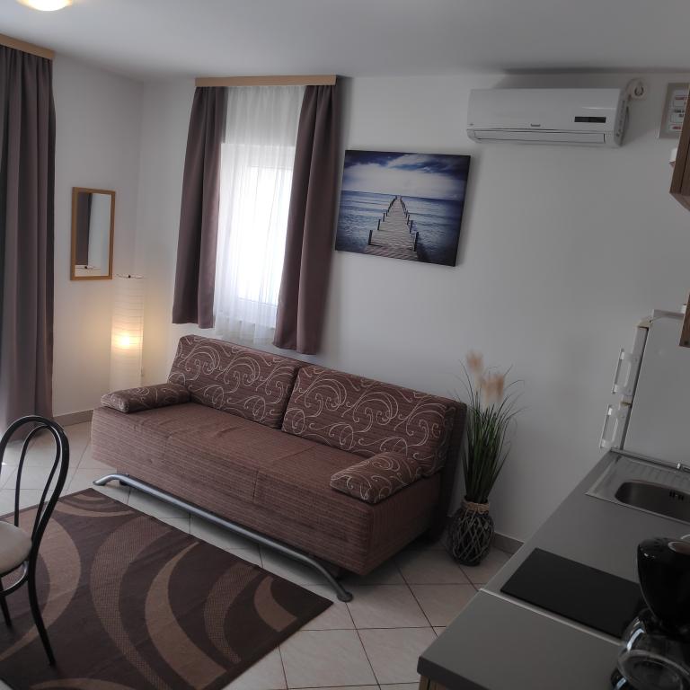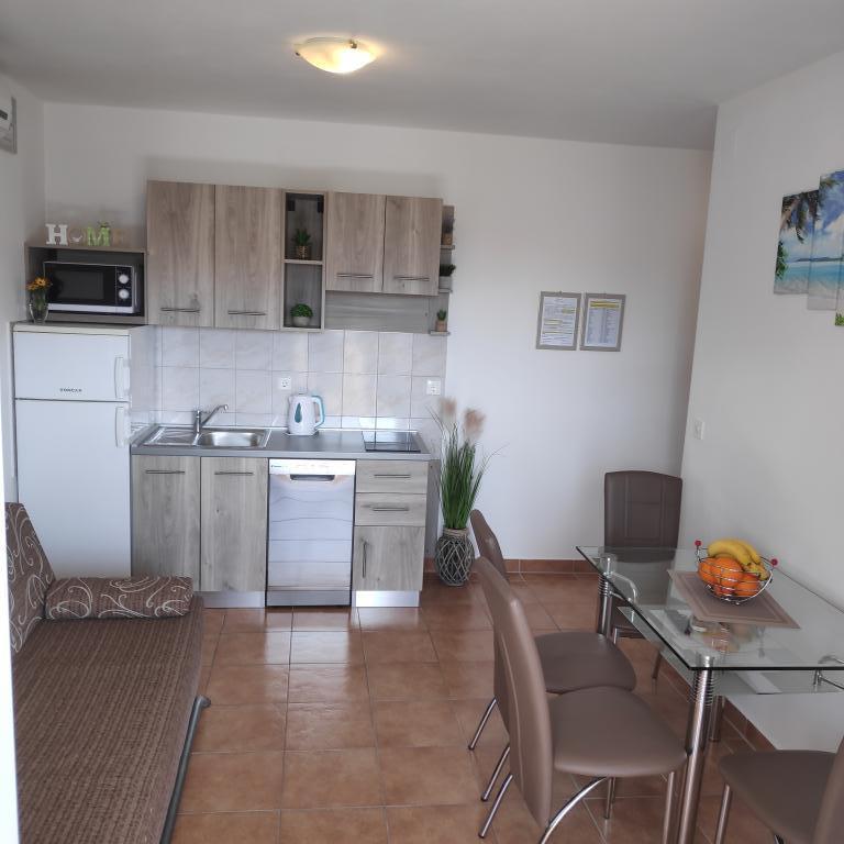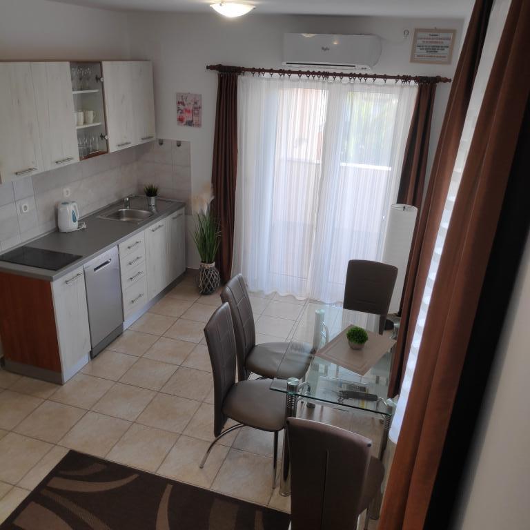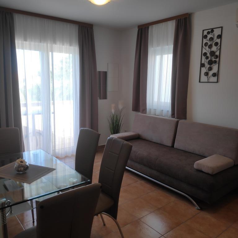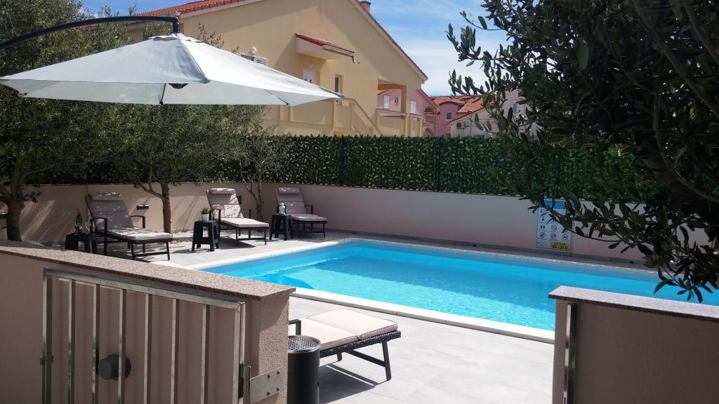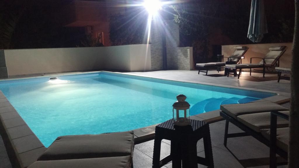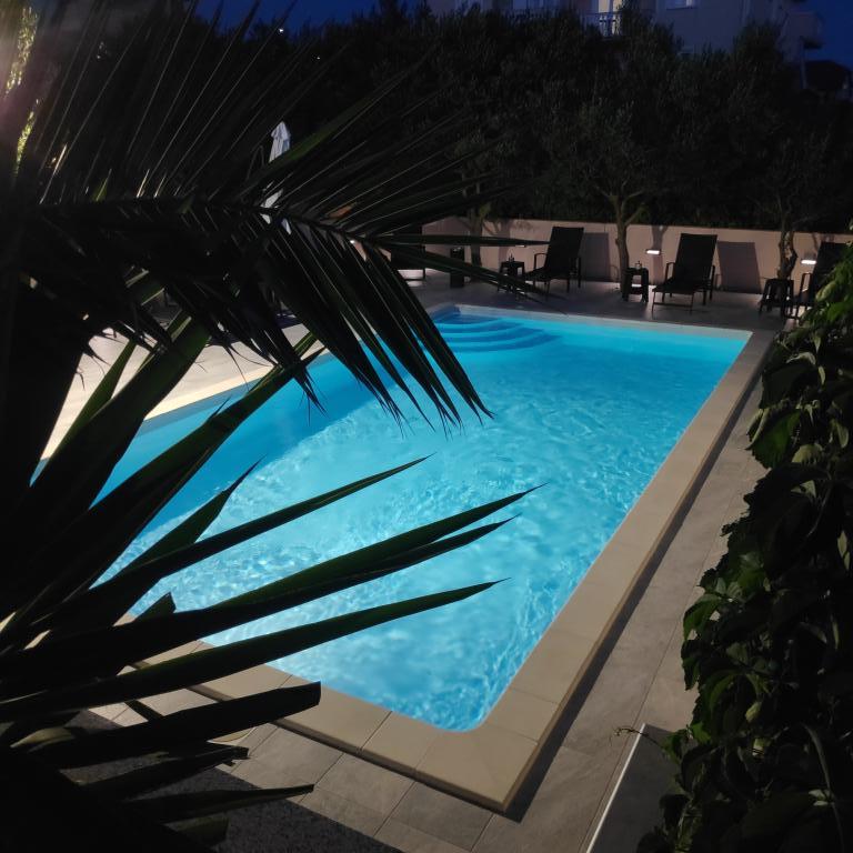 Villa Petra & Sanja (Villa med pool) ligger i NOVALJA på den smukke ø PAGU, beliggende midt i en have, omgivet af oliventræer og palmer. Gæsterne har adgang til en udendørs pool, brug af en grill, gratis trådløs internetadgang, en parkeringsplads, komfortable og moderne indrettede værelser. Samtlige lejligheder har aircondition, balkon med opholdsområde, fuldt udstyret køkken og badeværelse. Alle lejligheder har en mikrobølgeovn, en opvaskemaskine og en vaskemaskine. 6 lejligheder med et eller to soveværelser kan reserveres. Kun ti minutters gang til sandstranden og kystpromenaden, der fører til centrum af Novalja. Andre smukke sand-, sten- og klippestrande er de smukkeste ved Adriaterhavet og ligger kun få minutter væk i bil. Taxaholdepladsen ligger 10 meter fra bygningen. Den berømte ZRĆE strand ligger i nærheden.