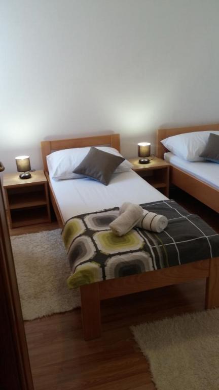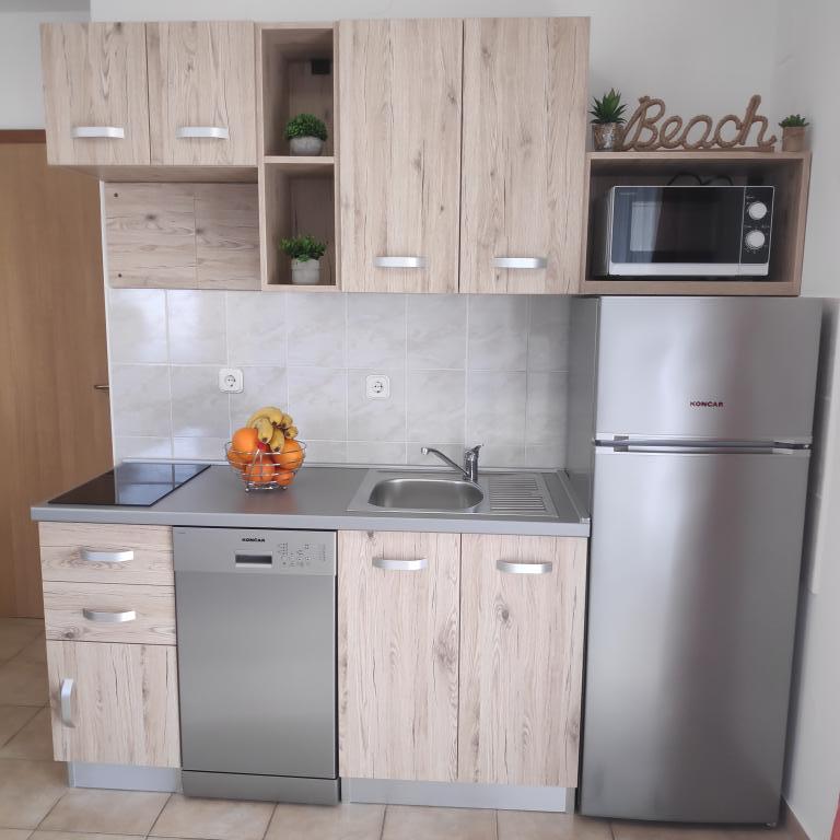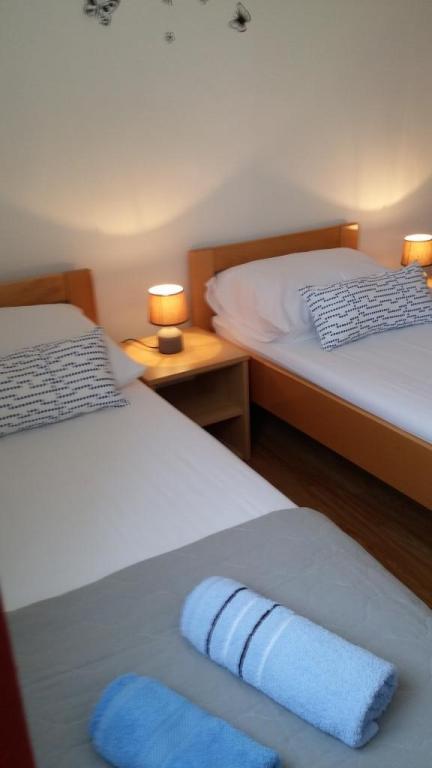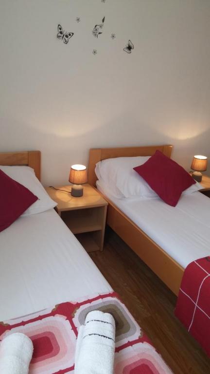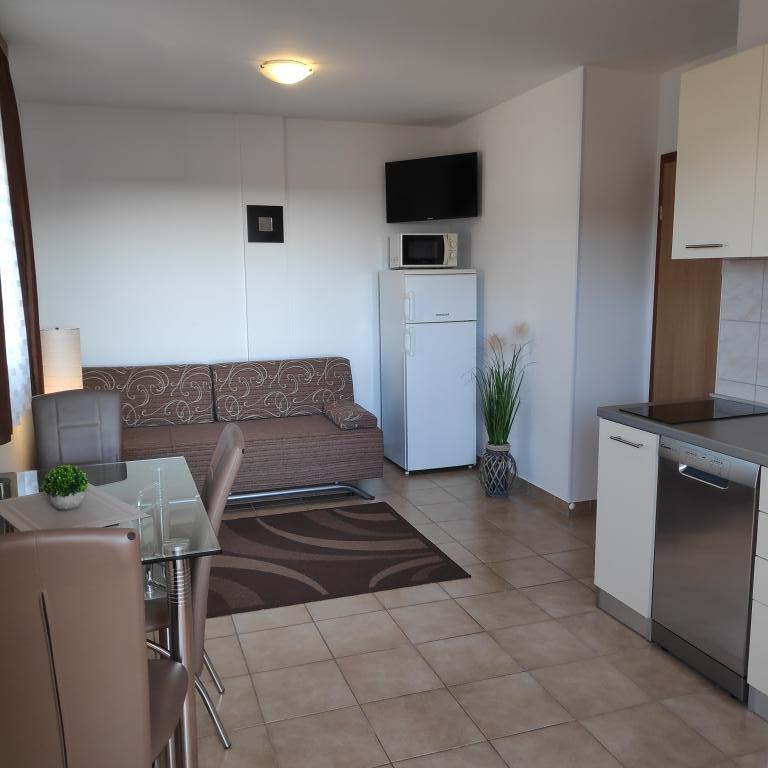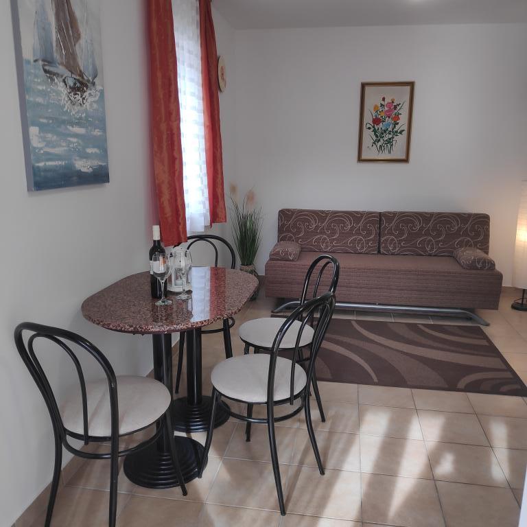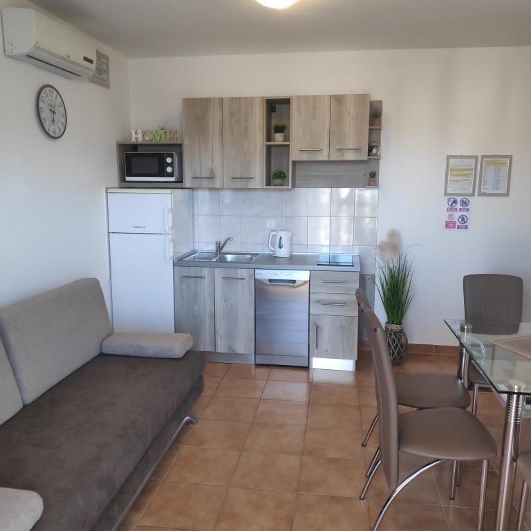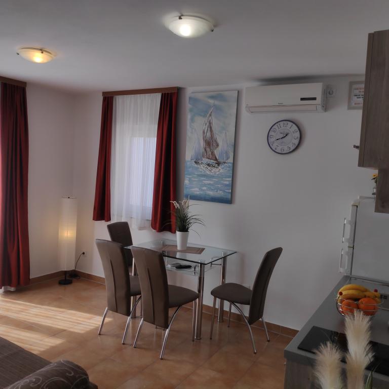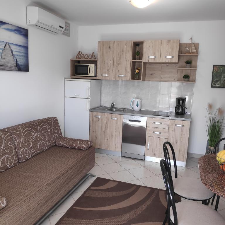 Villa Petra & Sanja (Villa med pool) ligger i NOVALJA på den smukke ø PAGU, beliggende midt i en have, omgivet af oliventræer og palmer. Gæsterne har adgang til en udendørs pool, brug af en grill, gratis trådløs internetadgang, en parkeringsplads, komfortable og moderne indrettede værelser. Samtlige lejligheder har aircondition, balkon med opholdsområde, fuldt udstyret køkken og badeværelse. Alle lejligheder har en mikrobølgeovn, en opvaskemaskine og en vaskemaskine. 6 lejligheder med et eller to soveværelser kan reserveres. Kun ti minutters gang til sandstranden og kystpromenaden, der fører til centrum af Novalja. Andre smukke sand-, sten- og klippestrande er de smukkeste ved Adriaterhavet og ligger kun få minutter væk i bil. Taxaholdepladsen ligger 10 meter fra bygningen. Den berømte ZRĆE strand ligger i nærheden.