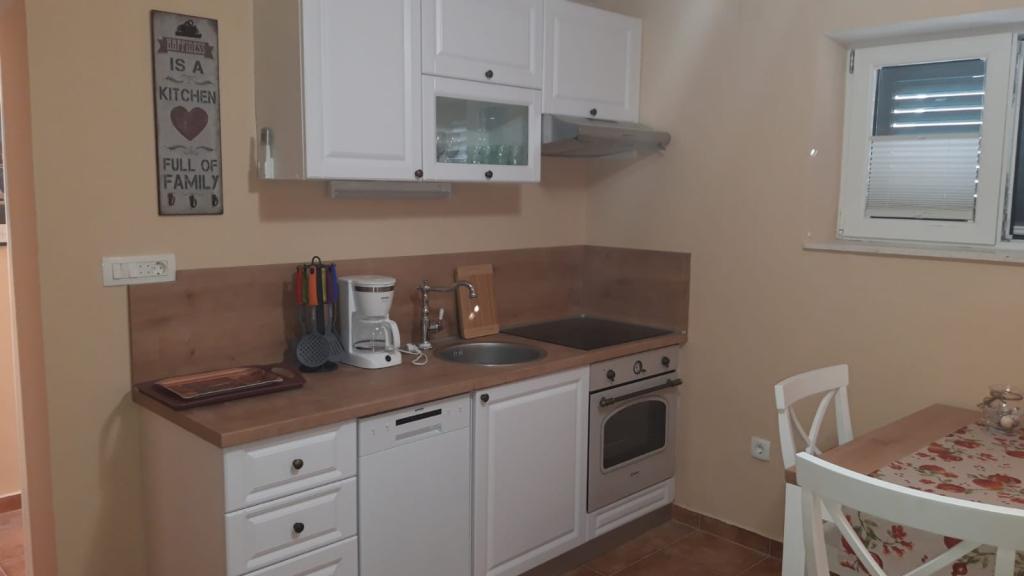 Kære gæster, i vores anlæg tilbyder vi dig en smukt indrettet lejlighed. Anlægget er beliggende i byens centrum, og er få minutters gang fra hovedstranden. Lejligheden er fuldt og moderne udstyret, består af et køkken med spiseplads, et soveværelse med dobbeltseng og et badeværelse. Der er en rummelig gårdhave med grill og havemøbler. En oase af grønt, stilhed og fred vil bidrage til dit behagelige ophold. Ophold kortere end 3 nætter debiteres 30 % mere.