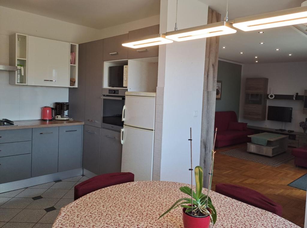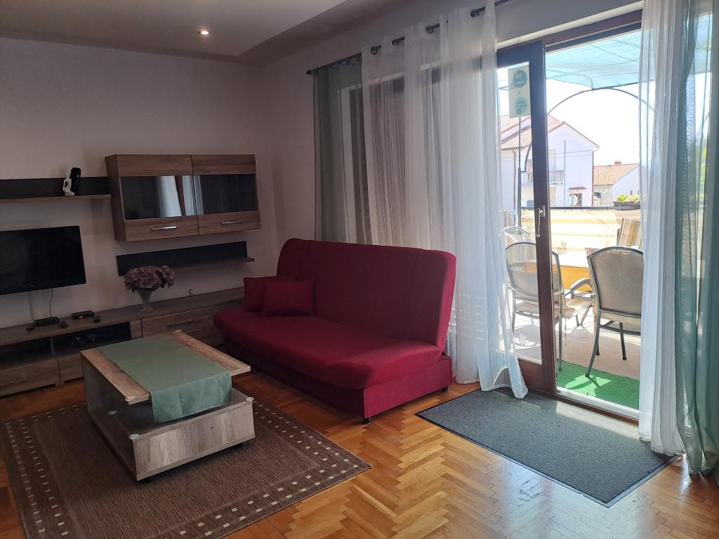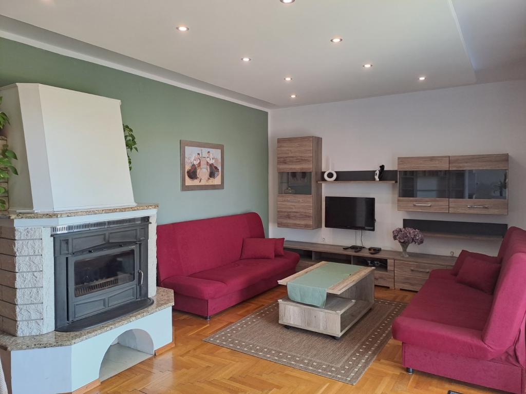 Moderne indrettet hus med en stor have og en have, beliggende i en rolig del af Novi Vinodolski. Lejligheden er beliggende på første sal. Det har en stor terrasse med grill og havudsigt, og parkeringspladser. Et ideelt sted at tilbringe en familieferie.