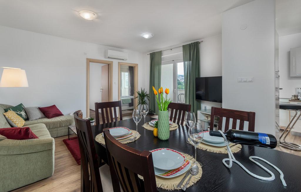 Velkommen til en fuldt og moderne udstyret komfortabel lejlighed (65 m2 - 1. sal) beliggende i byens roligste og bedst bedømte område (Kalvarija - Panos 30). Ejendommen ligger 5-7 minutters gang (300 m) fra den første strand (Bribirska obala), Marina Novi, butikker (Lidl) og restauranter og 10 minutters gang fra byens centrum. Denne lejlighed med aircondition har 2 soveværelser, en stor stue, 2 balkoner med en smuk udsigt over lystbådehavnen og byen, et fuldt udstyret køkken og et badeværelse med alle nødvendige apparater og køkken- og hygiejneartikler. Lejlighed Sanja har 3 stjerner og har gratis privat parkering samt gratis WiFi overalt på ejendommen. Afstanden fra Trsat Slot er 40 km; 30 km fra Rijeka Lufthavn (Krk)..., Hvis du ønsker ægte afslapning, fred og ro, er lejlighed Sanja det rigtige valg for dig.
