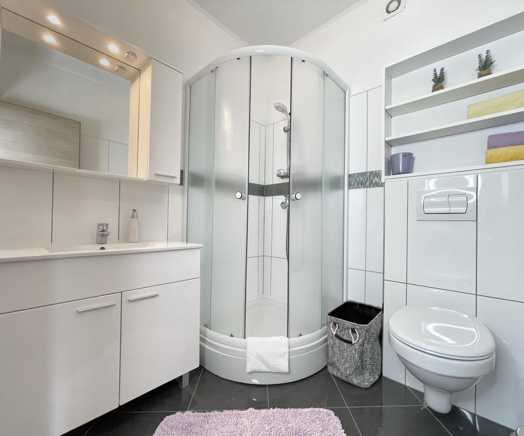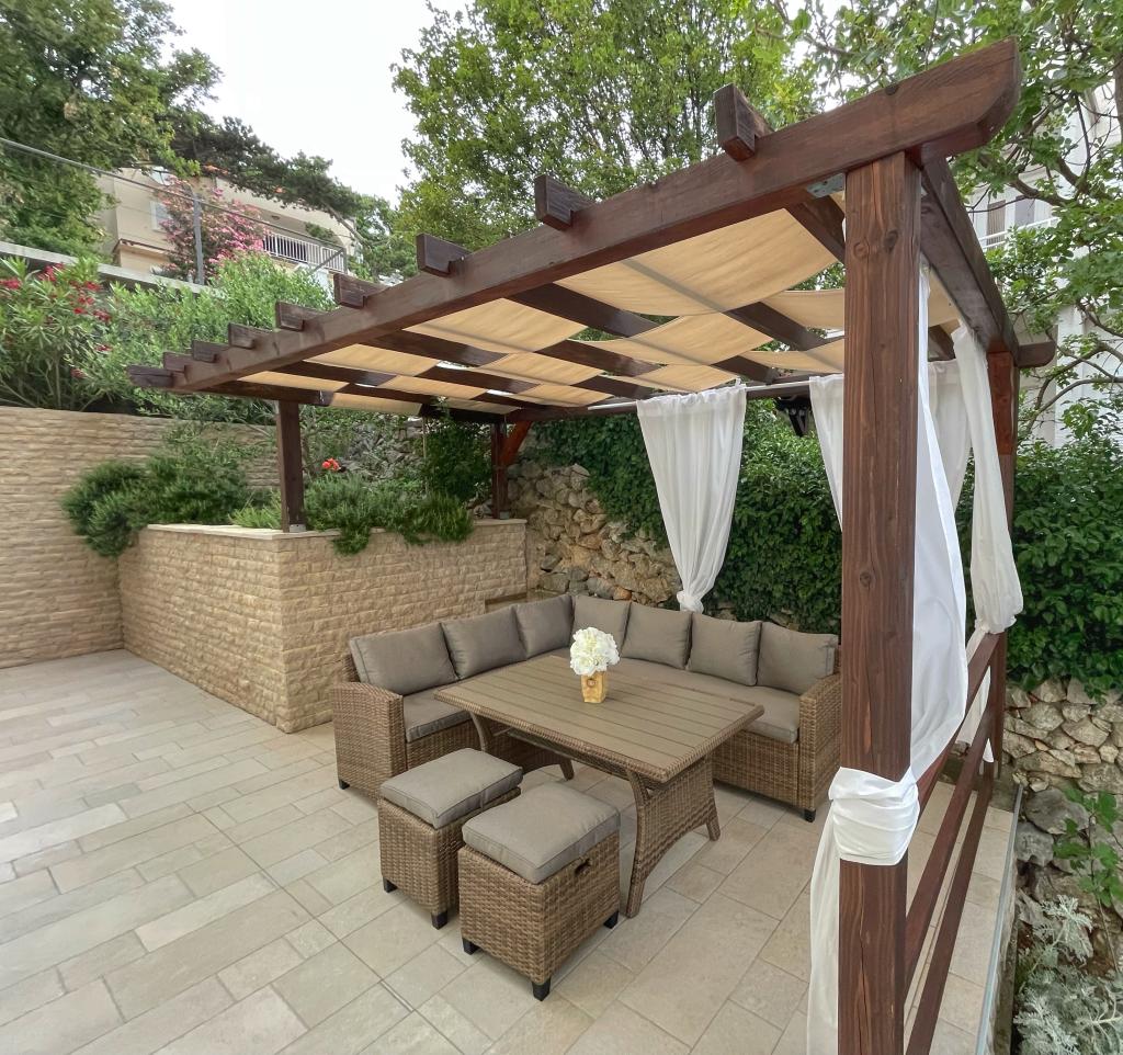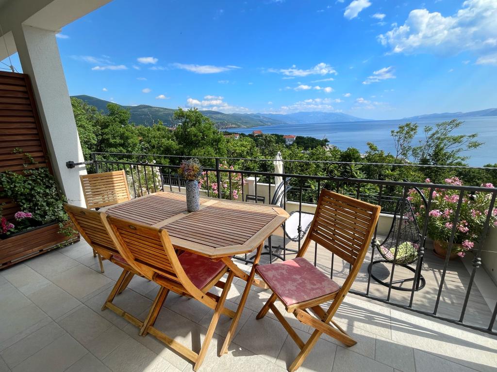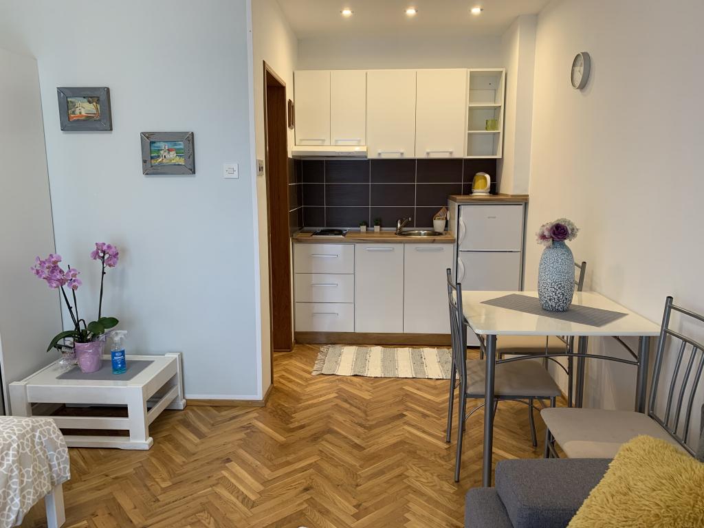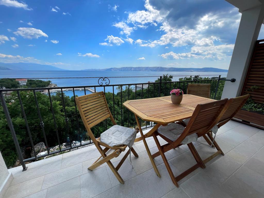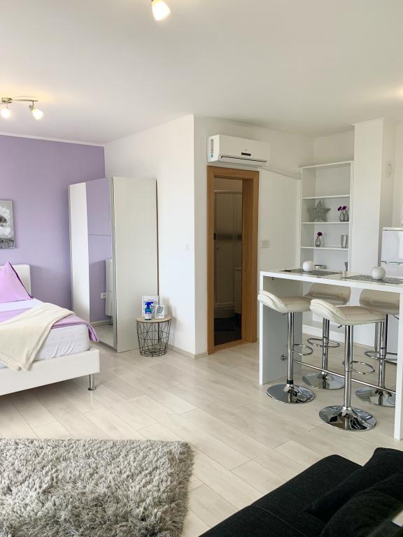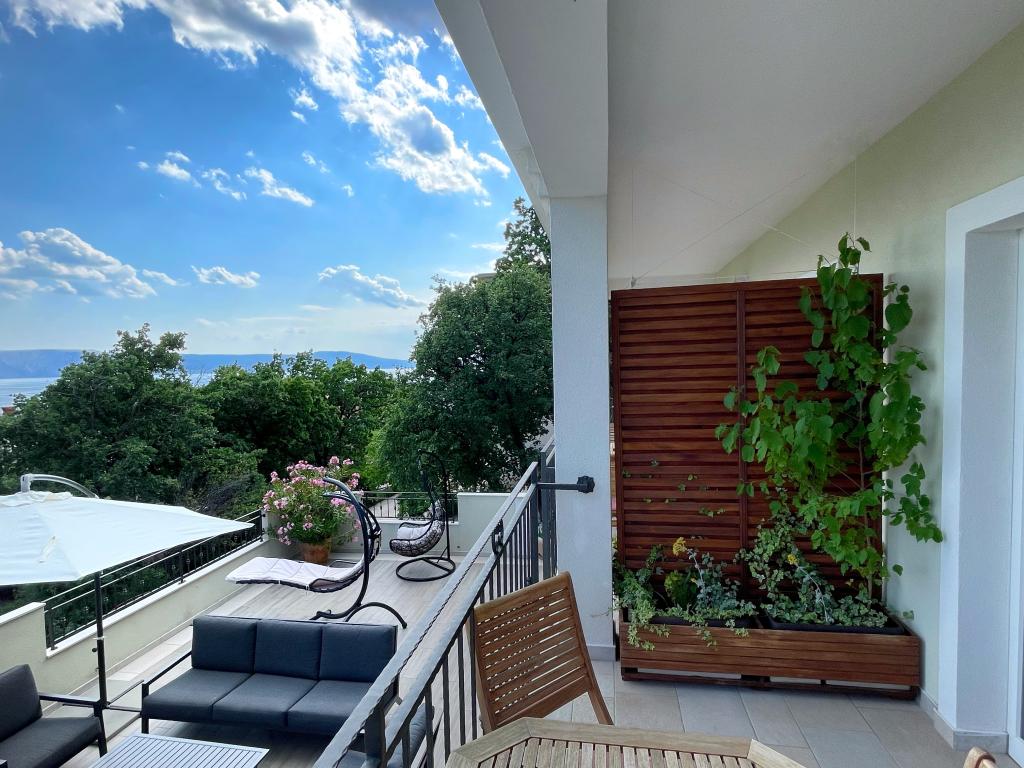Beliggende i en rolig del af Novi Vinodolski - Povila, kun 60 m fra stranden, vil fuldt udstyrede familielejligheder med aircondition og sikker parkeringsplads i gården give dig en uforglemmelig ferie. Selvfølgelig - internettet er hurtigt og ubegrænset. Slap af på en af de to grillterrasser eller nyd solnedgangen på terrassen med liggestole. Du drikker din morgenkaffe med udsigt over havet.