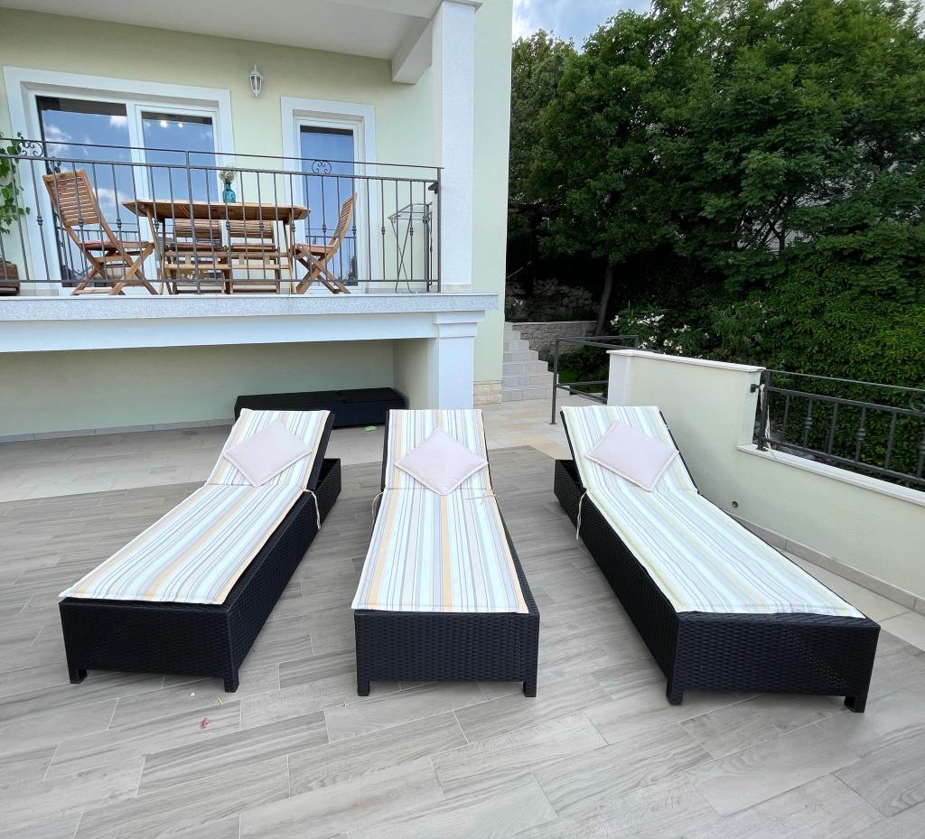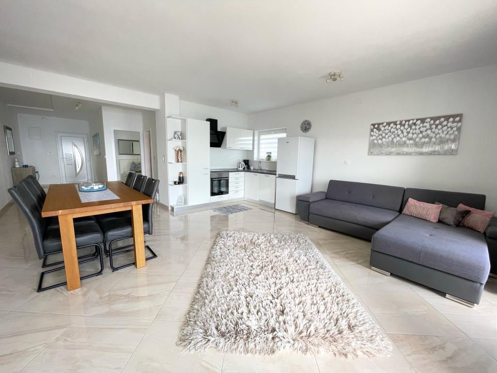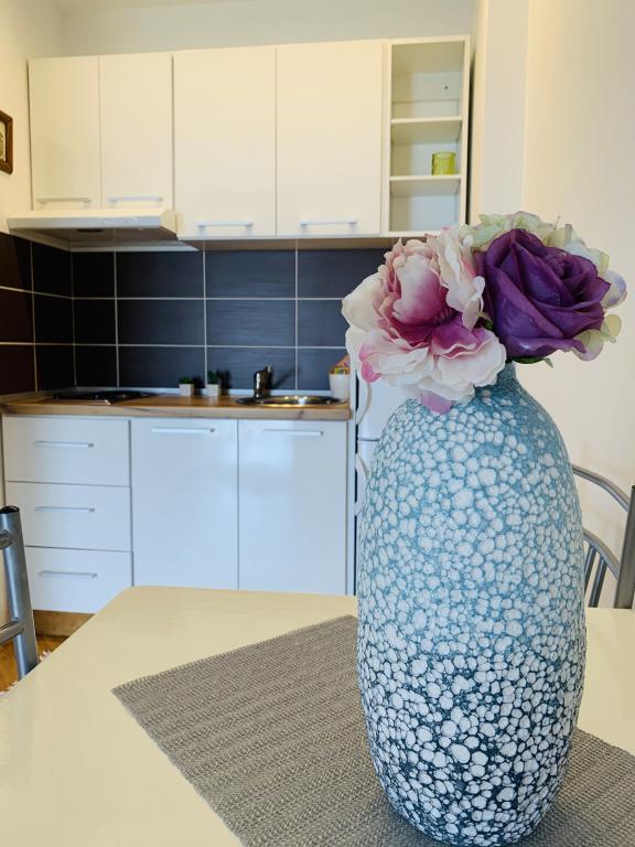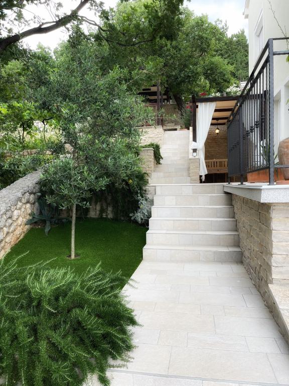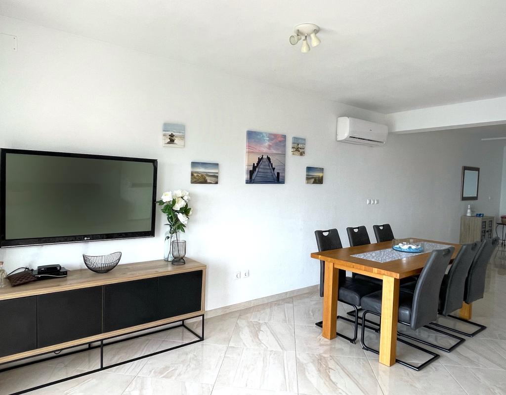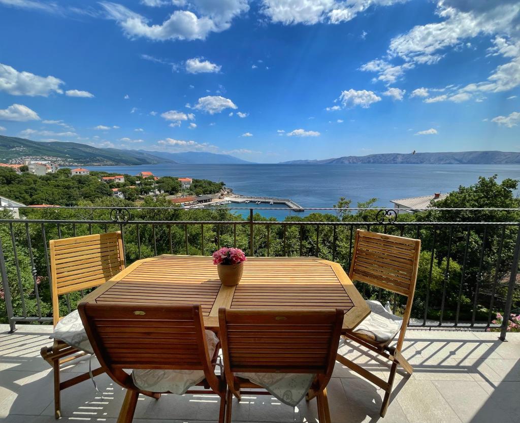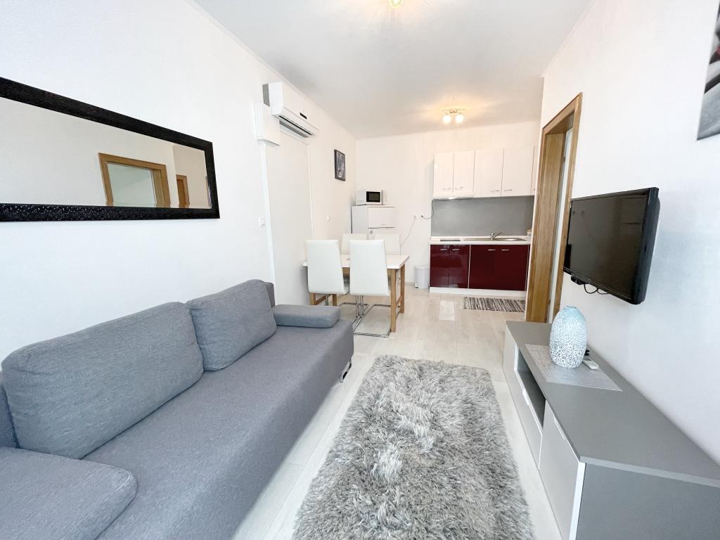 Beliggende i en rolig del af Novi Vinodolski - Povila, kun 60 m fra stranden, vil fuldt udstyrede familielejligheder med aircondition og sikker parkeringsplads i gården give dig en uforglemmelig ferie. Selvfølgelig - internettet er hurtigt og ubegrænset. Slap af på en af de to grillterrasser eller nyd solnedgangen på terrassen med liggestole. Du drikker din morgenkaffe med udsigt over havet.