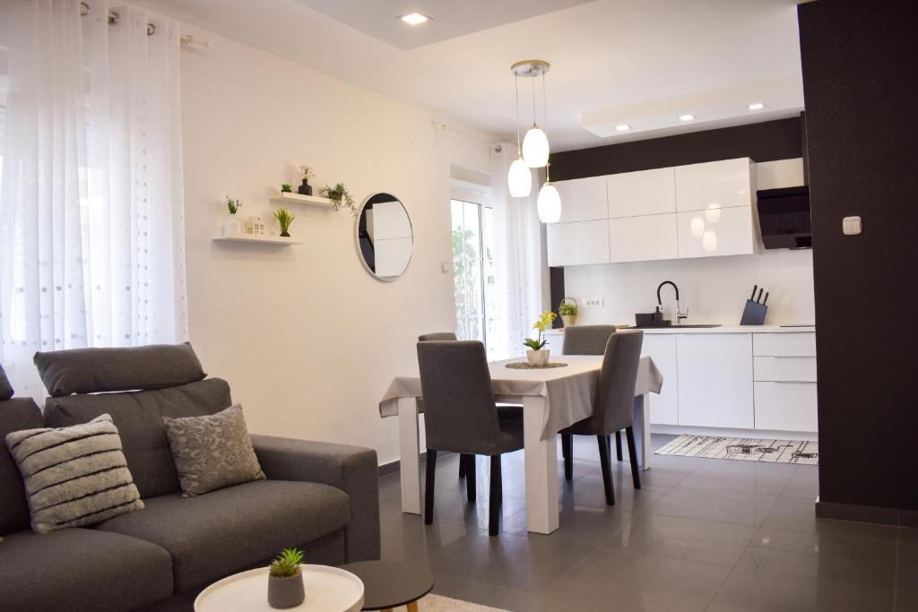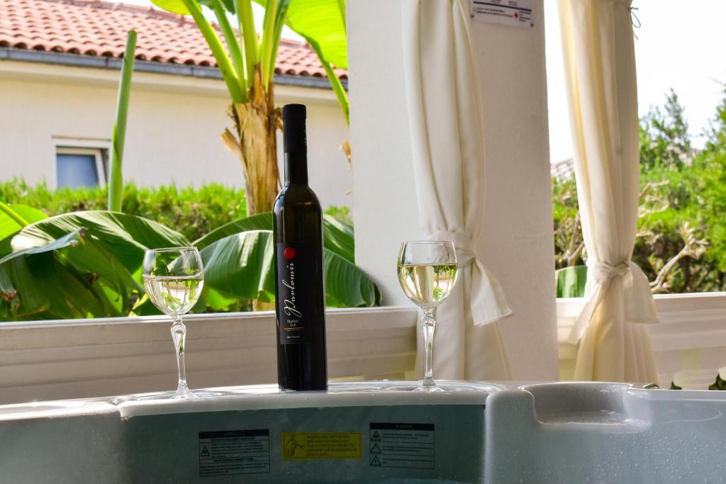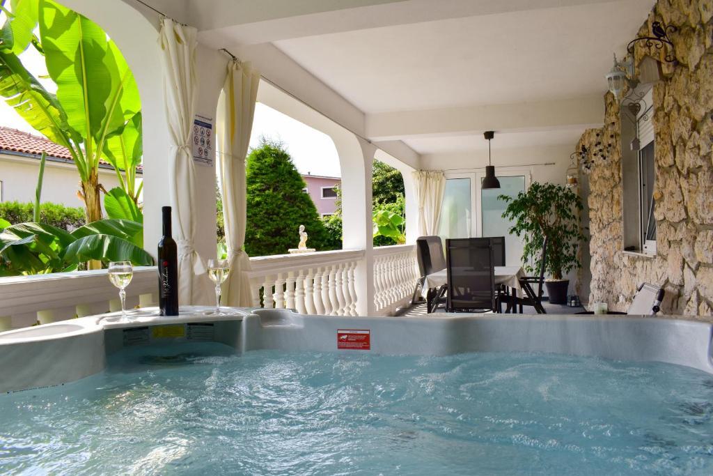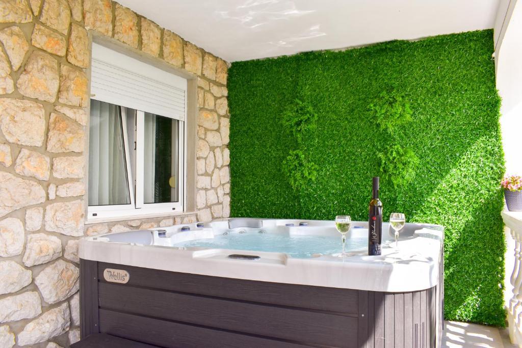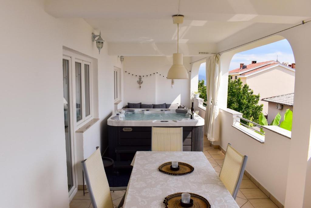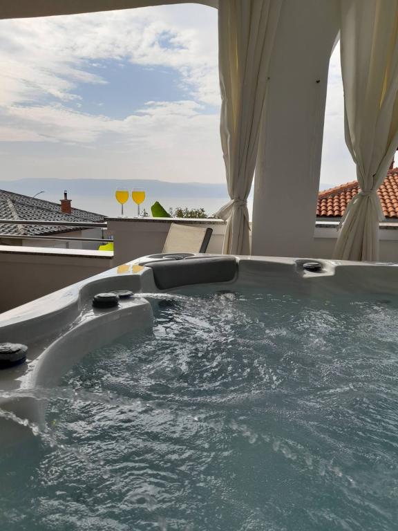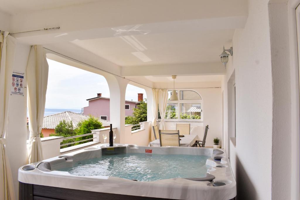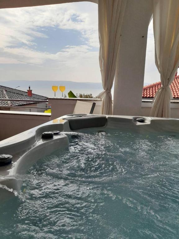 De 4-stjernede Motar Apartments ligger i byen Novi Vinodolski i Kvarnerbugten, kun 350 m fra stranden. Ejendommen har to lejligheder, der er ideelle til ferie og sommerfornøjelse. Den større lejlighed (A4) er på 80 m2 og har to soveværelser med en stor dobbeltseng, et køkken, en stue, to badeværelser med hårtørrer og en 30 m2 terrasse med en stor hydromassage-pool med udsigt over havet og øerne, mens den mindre lejlighed (A2) har et soveværelse med en stor dobbeltseng, en stue, et køkken og et badeværelse med hårtørrer. Lejligheden er på 60 m2 og har også en 30 m2 terrasse med en stor hydromassage-pool med udsigt over den anlagte have og græsplænen. Begge lejligheder har et fuldt udstyret køkken med ovn, kogeplader, emhætte, elkedel, Nespresso, filterkaffemaskine, opvaskemaskine, køleskab og mikrobølgeovn. Begge lejligheder har pengeskab.