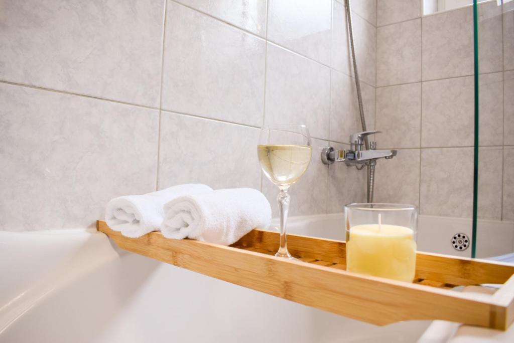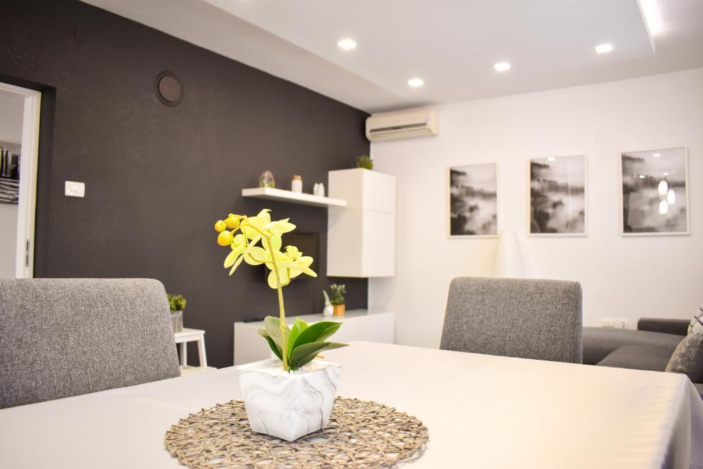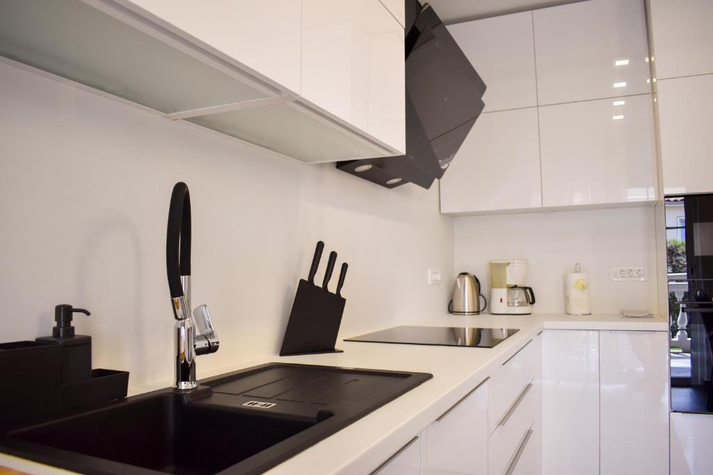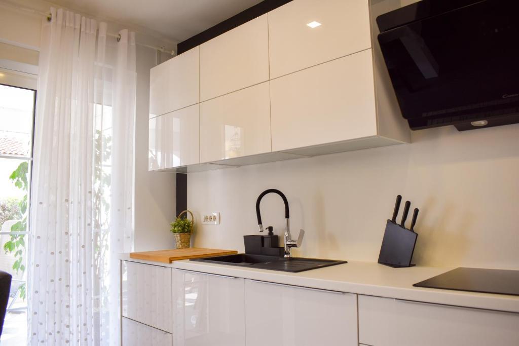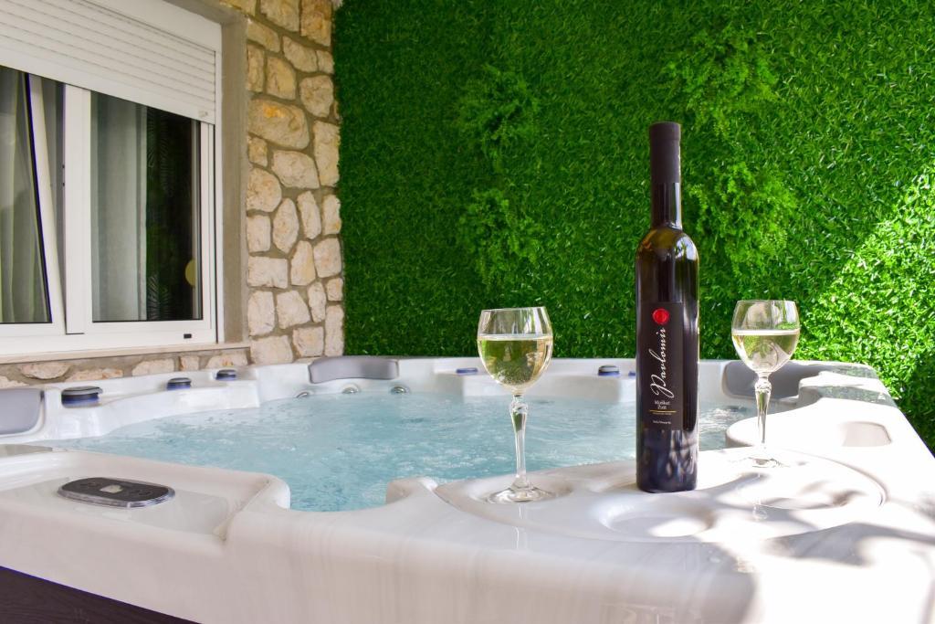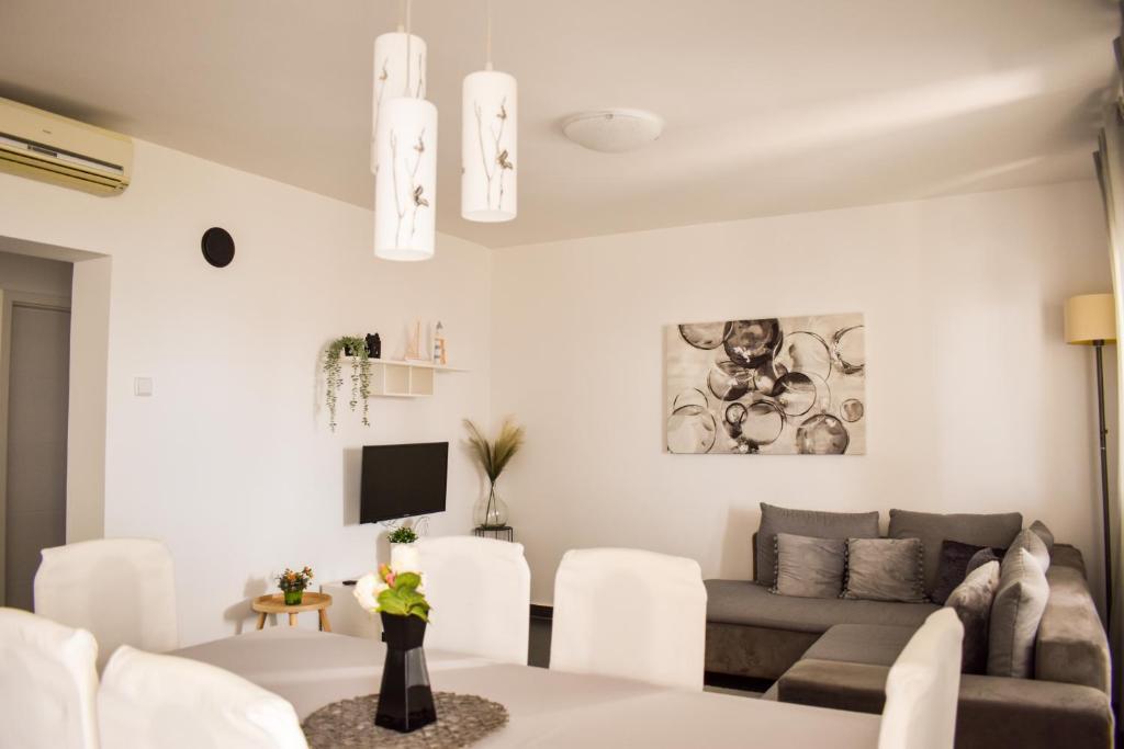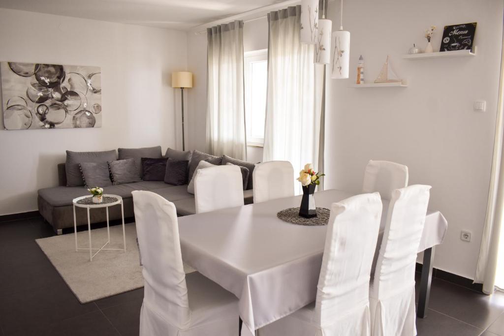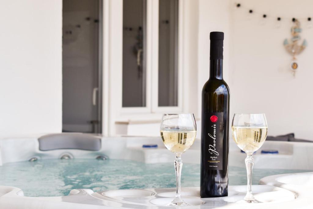 De 4-stjernede Motar Apartments ligger i byen Novi Vinodolski i Kvarnerbugten, kun 350 m fra stranden. Ejendommen har to lejligheder, der er ideelle til ferie og sommerfornøjelse. Den større lejlighed (A4) er på 80 m2 og har to soveværelser med en stor dobbeltseng, et køkken, en stue, to badeværelser med hårtørrer og en 30 m2 terrasse med en stor hydromassage-pool med udsigt over havet og øerne, mens den mindre lejlighed (A2) har et soveværelse med en stor dobbeltseng, en stue, et køkken og et badeværelse med hårtørrer. Lejligheden er på 60 m2 og har også en 30 m2 terrasse med en stor hydromassage-pool med udsigt over den anlagte have og græsplænen. Begge lejligheder har et fuldt udstyret køkken med ovn, kogeplader, emhætte, elkedel, Nespresso, filterkaffemaskine, opvaskemaskine, køleskab og mikrobølgeovn. Begge lejligheder har pengeskab.