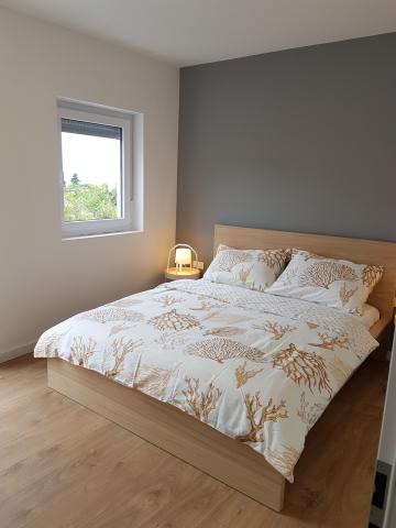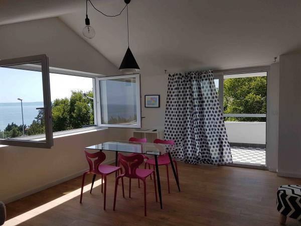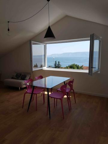 Den helt nye lejligheder i stueetagen (over gulvet i kælderen) og første sal, med privat udenfor indgang, i et roligt og grønt miljø. Rummelige værelser med panoramaudsigt over havet, øen Krk og Velebit: - et soveværelse med en dobbeltseng og et værelse med sovesofa 160x200 cm - moderne og rummelige badeværelser Køkkenudstyr inkluderer: bestik og køkkenredskaber, køleskab, el-komfur, vask, mikrobølgeovn (lejlighed 1) og ovnen (lejlighed 2), kaffemaskine, el-kedel og en opvaskemaskine (lejlighed 2). Gratis Wi-Fi, satellit-tv og aircondition. Tæt på stranden, butikker, restauranter og byens centrum. parkeringsplads