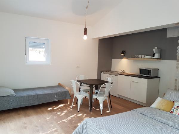 Turistskat er inkluderet i prisen.Der er virkelig ikke den mindste fejl. Lejligheden er smuk - yderst ren, pæn, med masser af lys og funktionel. Smukt møbleret og har virkelig alt hvad du behøver. Lejligheden har en plads i haven, hvor det er behageligt at bo hele dagen på grund af den naturlige skygge. Den smukt anlagte strand ligger i nærheden, den er pæn og har tilhørende faciliteter. Butikker er i nærheden. Og endelig ejerne, fru Kristina og hr. Boris er vidunderlige mennesker, venlige, imødekommende og gør alt for at gæsterne skal føle sig godt tilpas og velkommen. Vi kommer helt sikkert igen.