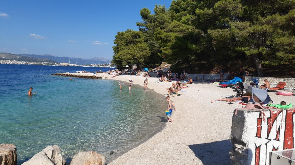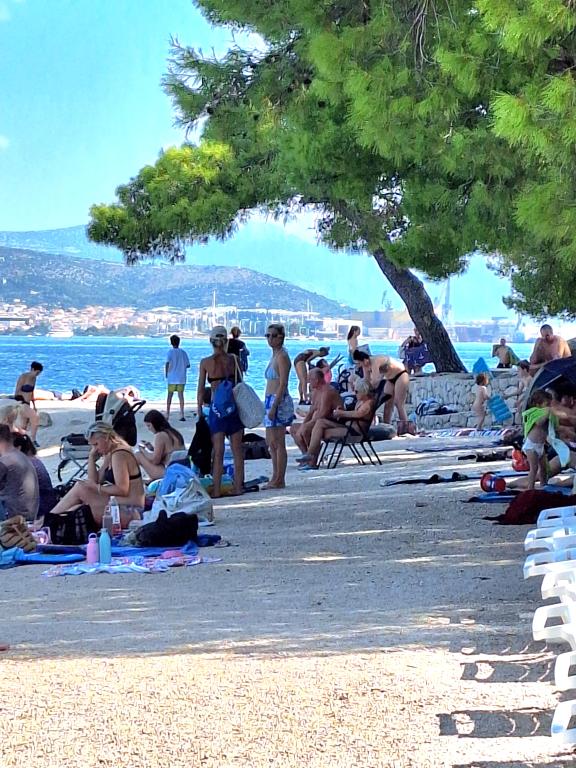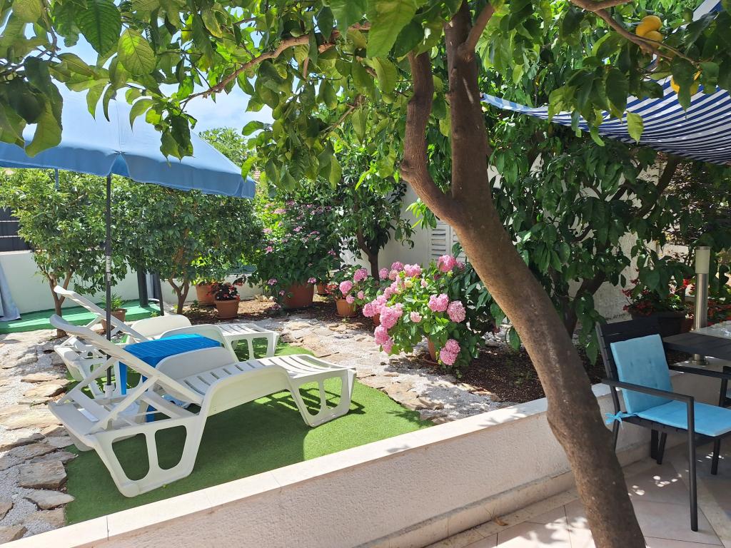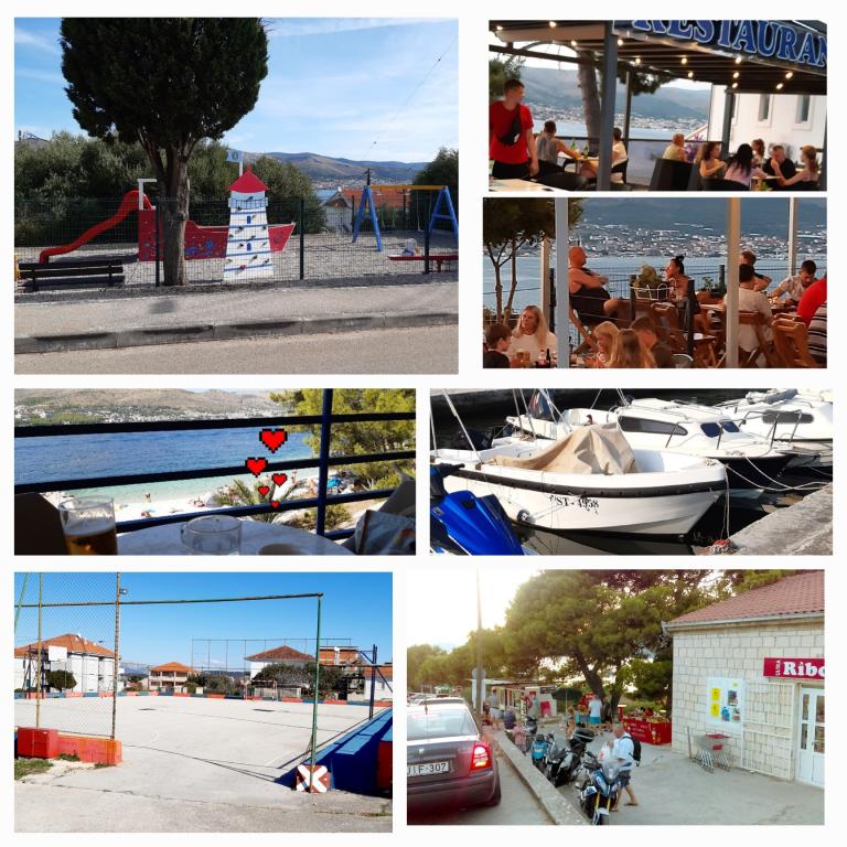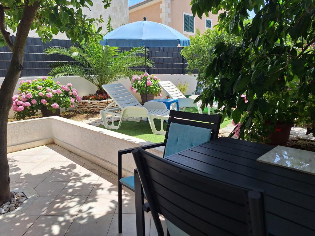 Fremragende udstyret (alt inkluderet i prisen, såvel som turistskatten), rummelig lejlighed Gizella, i stueetagen af et familiehus, med terrasse, gårdhave og parkering, dens beliggenhed tilbyder en rolig, afslappende familieferie i skygge af appelsin, citron, mandarin og smukke fyrreskove, som tårner sig op over det krystalklare hav, med mulighed for at gå og cykle ved siden af olivenlunde og middelhavsmedicinske planter. Du er de eneste gæster i anlægget, og du har en separat indgang. Strande med småsten, sten og beton med parkering, butikker, caféer, restauranter, fastfood, legepladser til børn og sport, bus og hæveautomat ligger fem til seks minutters gang væk. På samme tid, kun 8 km væk, tilbyder den antikke by Trogir, under beskyttelse af UNESCO, forbundet med broer, tæt på Krka National Park, øerne Šolta og Brač, dynamiske udflugter og underholdning. Nærheden til lufthavnen gør din ankomst lettere, og det er muligt at arrangere en transfer. Stedet er lille, roligt og smukt. Vi venter venligt på dig med en velkomstdrink