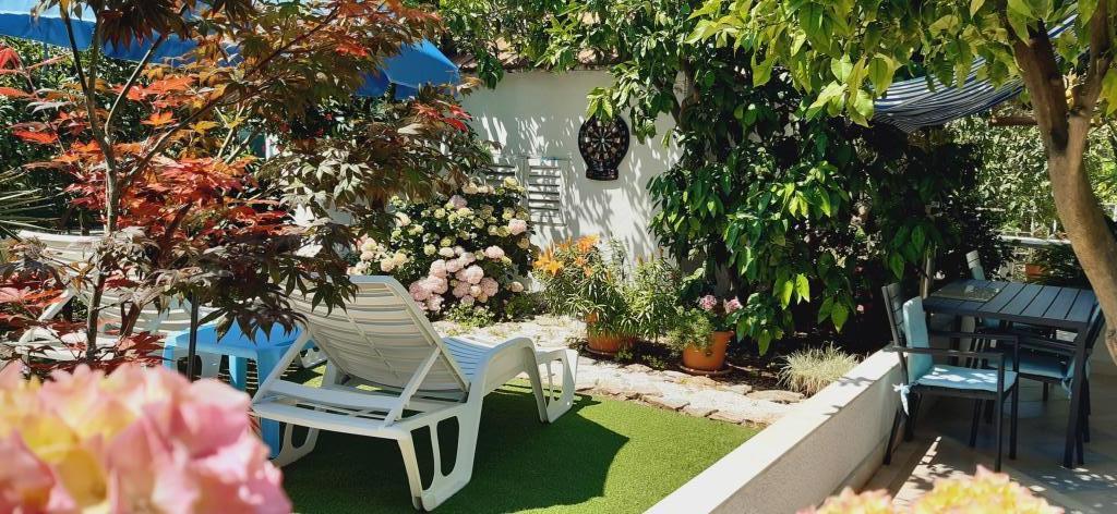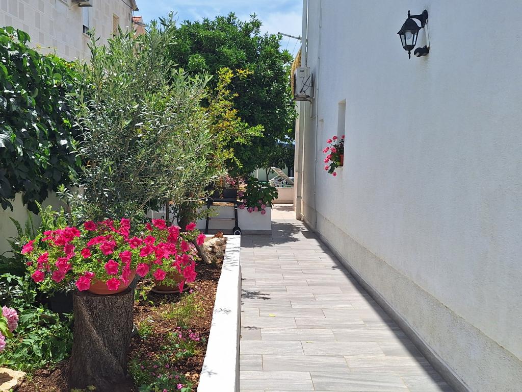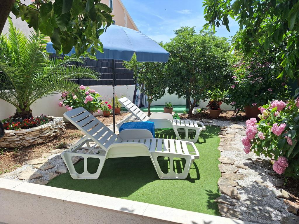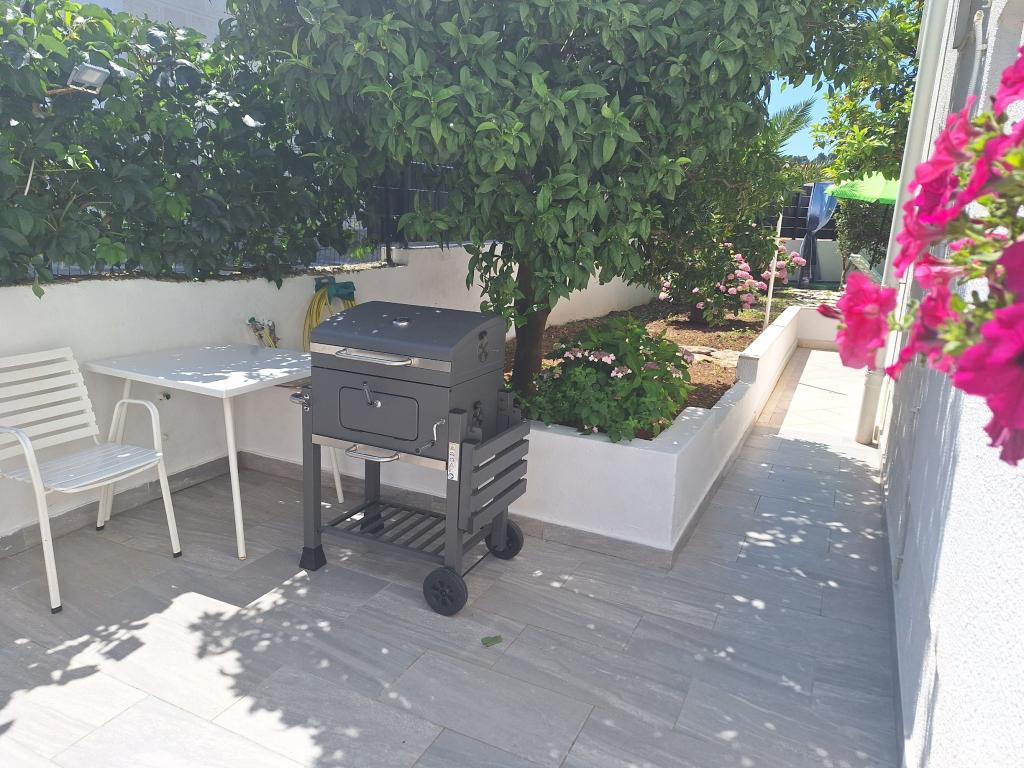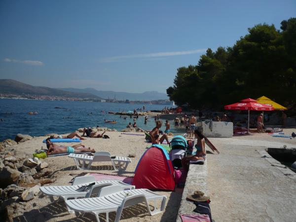 Fremragende udstyret (alt inkluderet i prisen, såvel som turistskatten), rummelig lejlighed Gizella, i stueetagen af et familiehus, med terrasse, gårdhave og parkering, dens beliggenhed tilbyder en rolig, afslappende familieferie i skygge af appelsin, citron, mandarin og smukke fyrreskove, som tårner sig op over det krystalklare hav, med mulighed for at gå og cykle ved siden af olivenlunde og middelhavsmedicinske planter. Du er de eneste gæster i anlægget, og du har en separat indgang. Strande med småsten, sten og beton med parkering, butikker, caféer, restauranter, fastfood, legepladser til børn og sport, bus og hæveautomat ligger fem til seks minutters gang væk. På samme tid, kun 8 km væk, tilbyder den antikke by Trogir, under beskyttelse af UNESCO, forbundet med broer, tæt på Krka National Park, øerne Šolta og Brač, dynamiske udflugter og underholdning. Nærheden til lufthavnen gør din ankomst lettere, og det er muligt at arrangere en transfer. Stedet er lille, roligt og smukt. Vi venter venligt på dig med en velkomstdrink