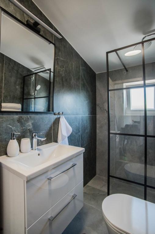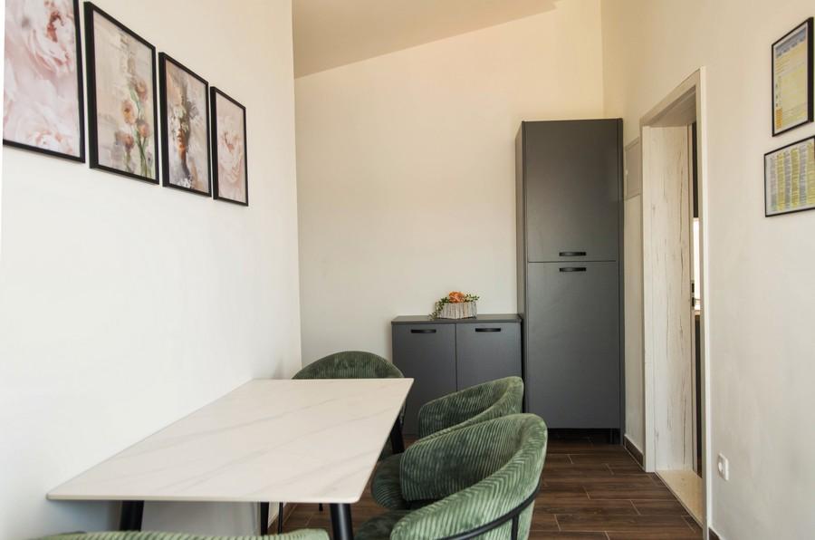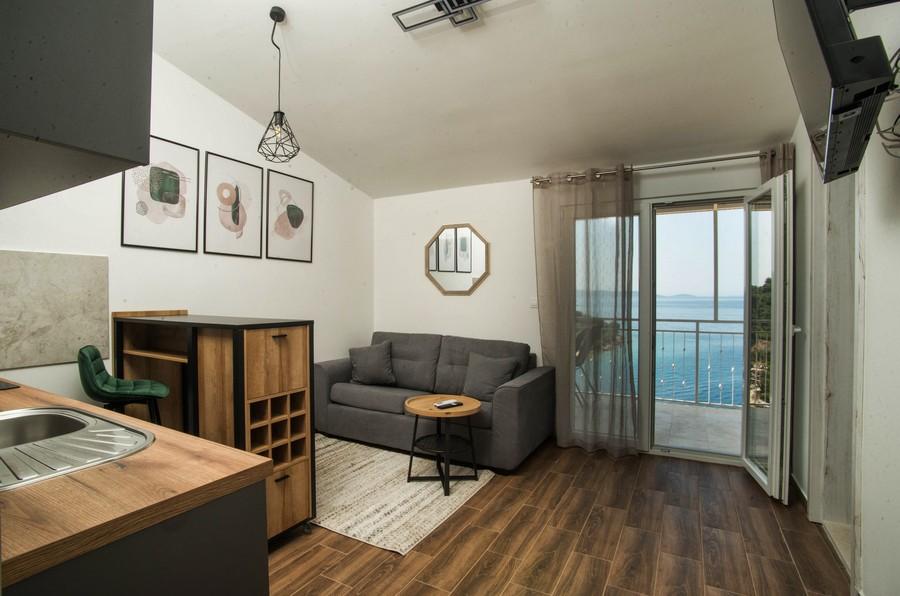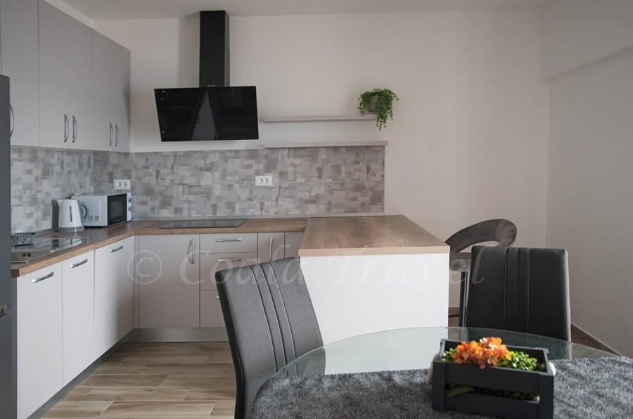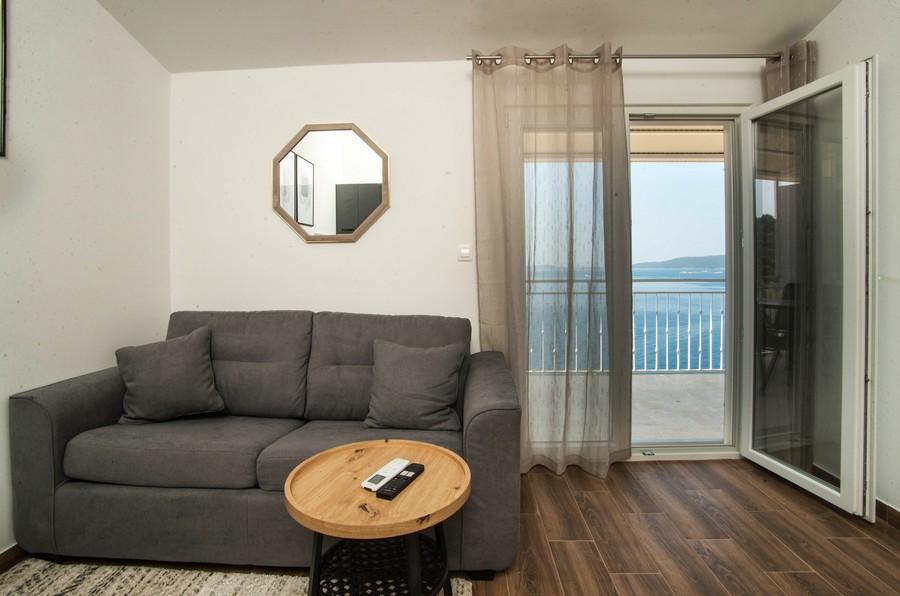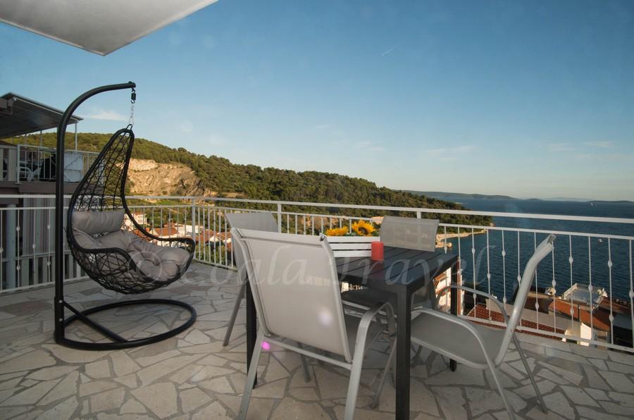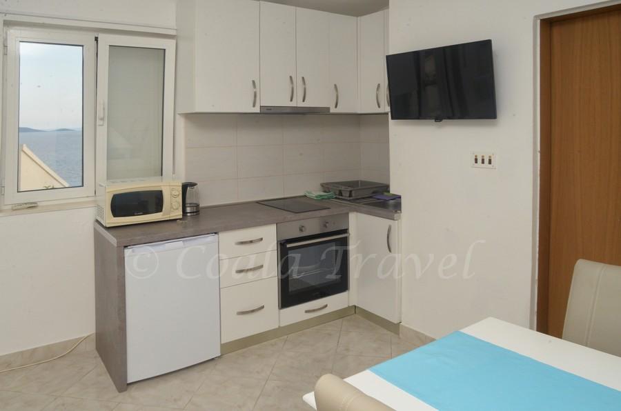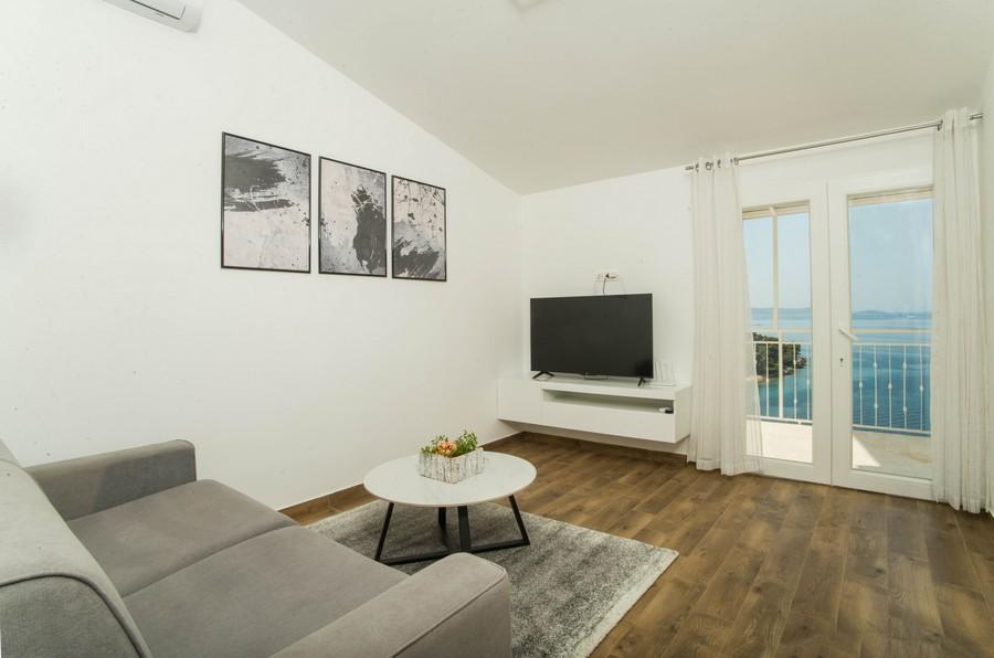 Lejlighedshuset Kristi ligger i et roligt område i Okrug Donji med en smuk udsigt over havet og øerne. 5 lejligheder og en fritliggende lejlighed som et separat hus. Hver lejlighed har en parkeringsplads i garagen til hver bil. Hundens ophold koster efterfølgende €10 pr. nat. Der refunderes ikke depositum for reservationer, der annulleres 40 dage eller mindre før ankomstdatoen. Hundens ophold €10 med forudgående varsel.