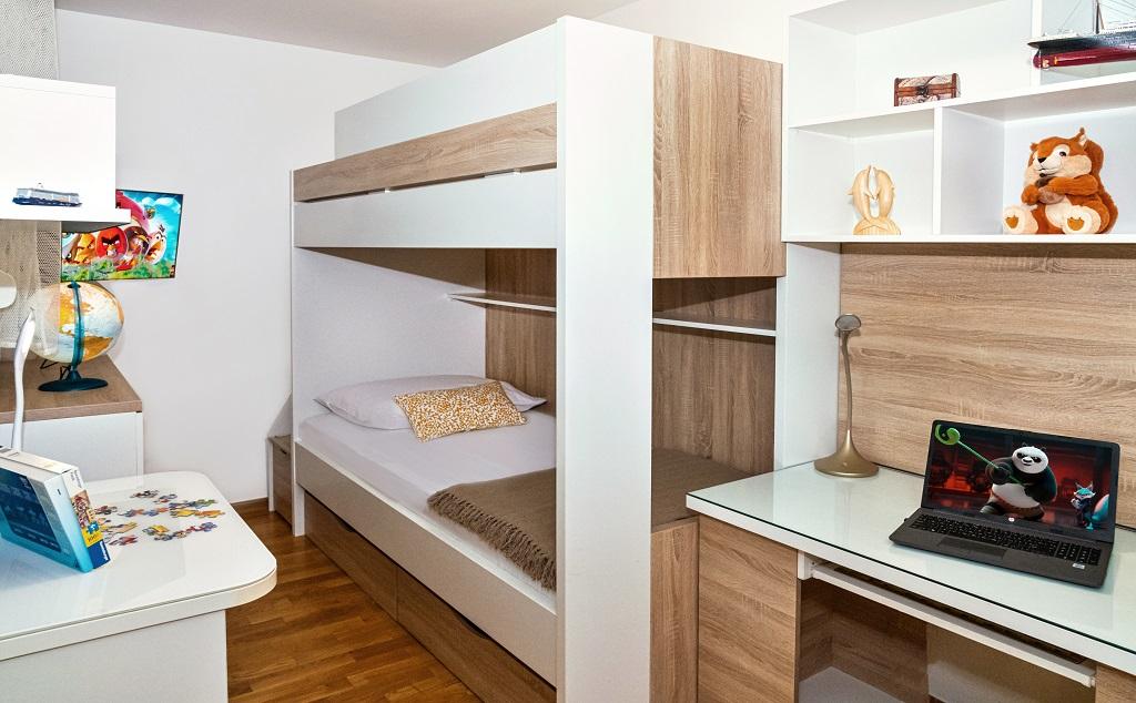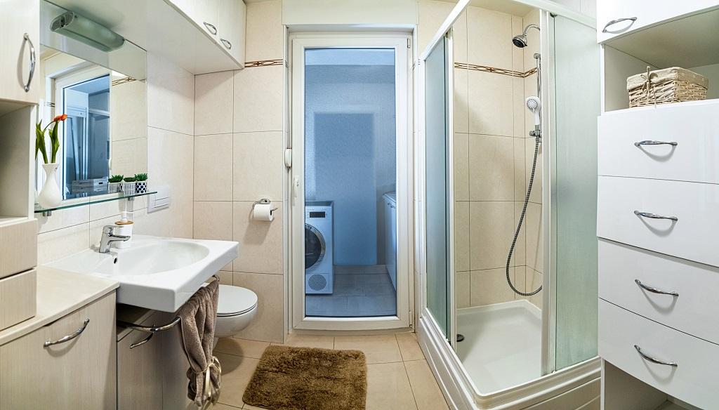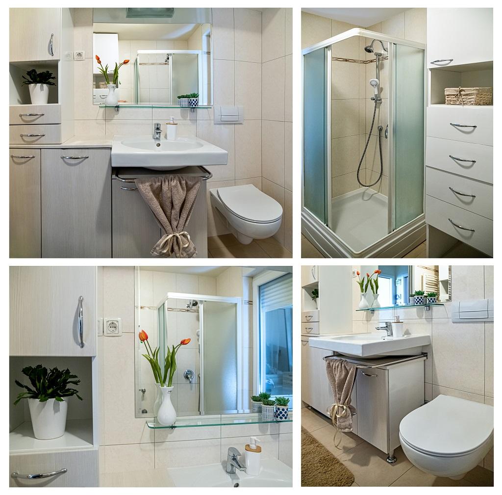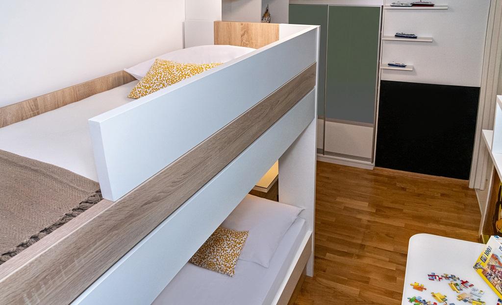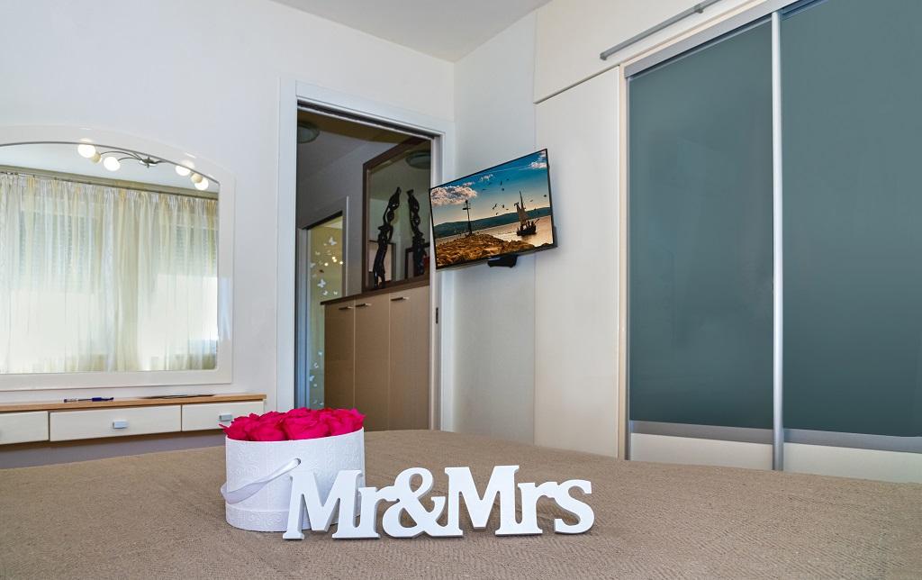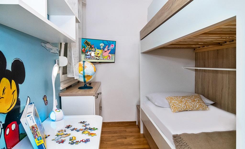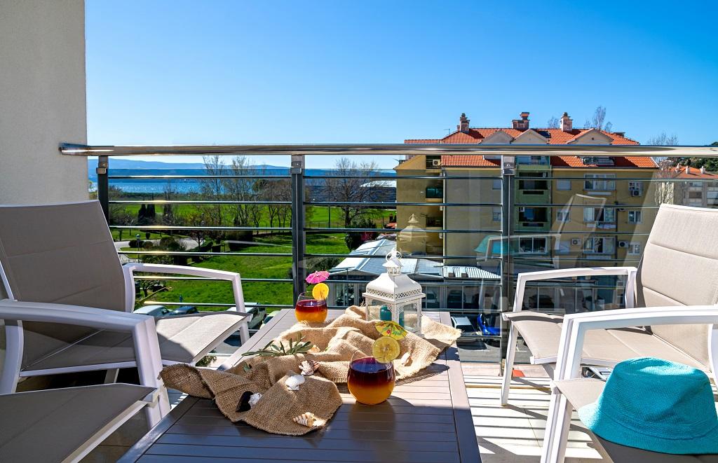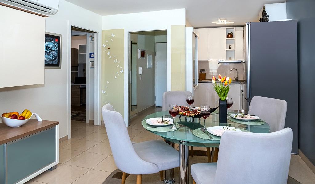 En ny, moderne lejlighed i umiddelbar nærhed af Cetina-floden og Adriaterhavet. Med 65 m2 boligareal kan den komfortabelt rumme op til 4+1 personer, og altanen byder på udsigt over floden og Cetina-mundingen. Lejligheden ligger på tredje sal. Bygningen har elevator. Lejligheden består af to soveværelser, et badeværelse, et veludstyret køkken med spiseplads, en stue og en overdækket balkon med udsigt over floden. Det første soveværelse har en stor seng (180 x 200) til 2 personer, natborde og opbevaringsplads til dit tøj og bagage. Det andet soveværelse har to senge (90 x 200) til 2 personer, natborde og opbevaringsplads til dit tøj og bagage. Begge soveværelser er lyse og har masser af naturligt lys gennem ovenlysvinduet. Soveværelserne har aircondition. Den består af en stue og en spisestue i ét rum, og et meget moderne, åbent køkken. Der er også et nyt køkken med de nyeste hvidevarer, herunder en 4-brænder elektrisk kogeplade, elektrisk ovn, køleskab, fryser, elkedel og alt det service, der er nødvendigt til selvforplejning. Lige ved siden af køkkenet er en spisestue med bord til 4 personer. Der er også opholdsstue med tv, elegant sovesofa og sofabord. Det har tv og Wi-Fi. Køling og varme i stue og køkken med aircondition. Glasskydedøre i stuen åbner direkte ud til altanen. Balkonen har panoramaudsigt over floden og havet. Kommer du i bil, er der en offentlig byparkering omkring bygningen. Vores lejlighed ligger 500 meter fra byen Omiš, som faktisk kun ligger 5 minutters gang fra vores sted. Sandstranden (500 meter væk) er et par minutters gang væk.