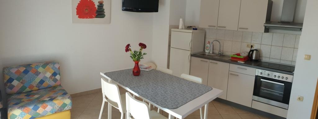 Vi boede hos fru Nediljka, om hvem jeg ikke har andet end rosende ord. En fuldstændig diskret ejer, der er tilgængelig og ikke påtrængende. Lejligheden er veludstyret, jeg var mest imponeret over opvaskemaskinen, brusekabinen som er meget rummelig, terrassen er smuk i skyggen, Balića-rotten er vidunderlig, med så mange smukke strande i umiddelbar nærhed, og den nærmeste strand har det reneste hav, jeg nogensinde har set.