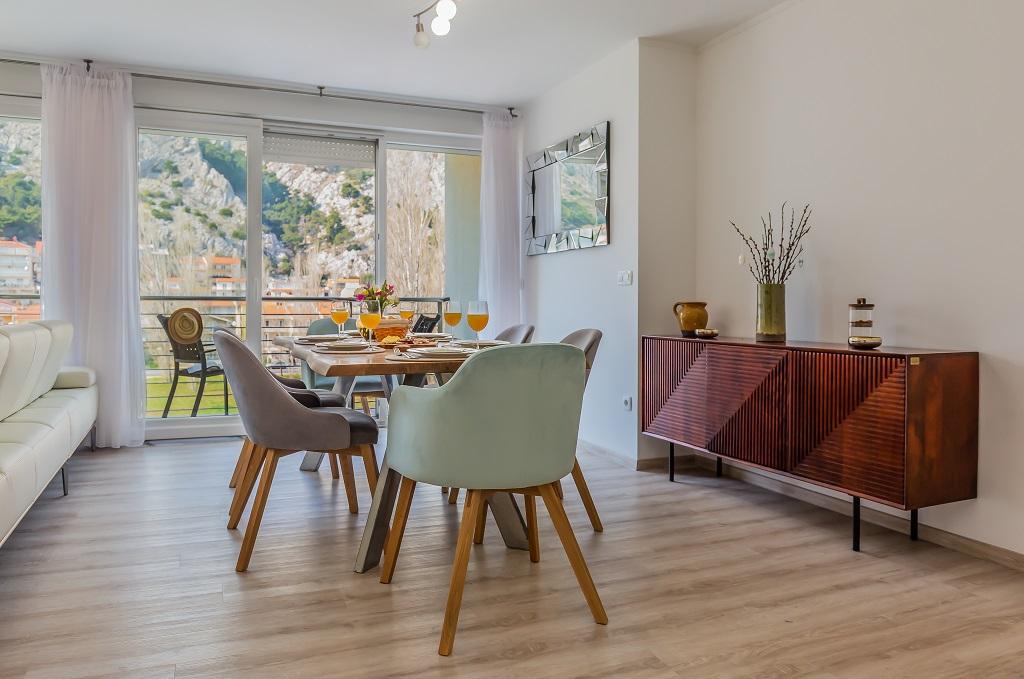 Nye, moderne og rummelige lejligheder i en af de mest luksuriøse bygninger i Omis nær floden Cetina og Adriaterhavet. AP 6 + 2 lejlighed med 3 soveværelser, stue, spisestue med køkken, 2 badeværelser, altan. AP 4 + 2 lejlighed med 2 soveværelser, stue, spisestue med køkken, 2 badeværelser, altan.
