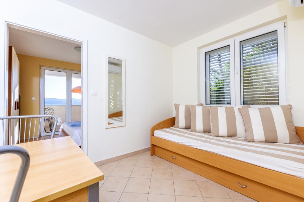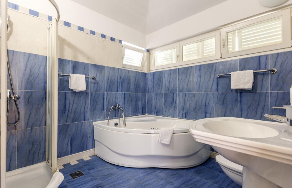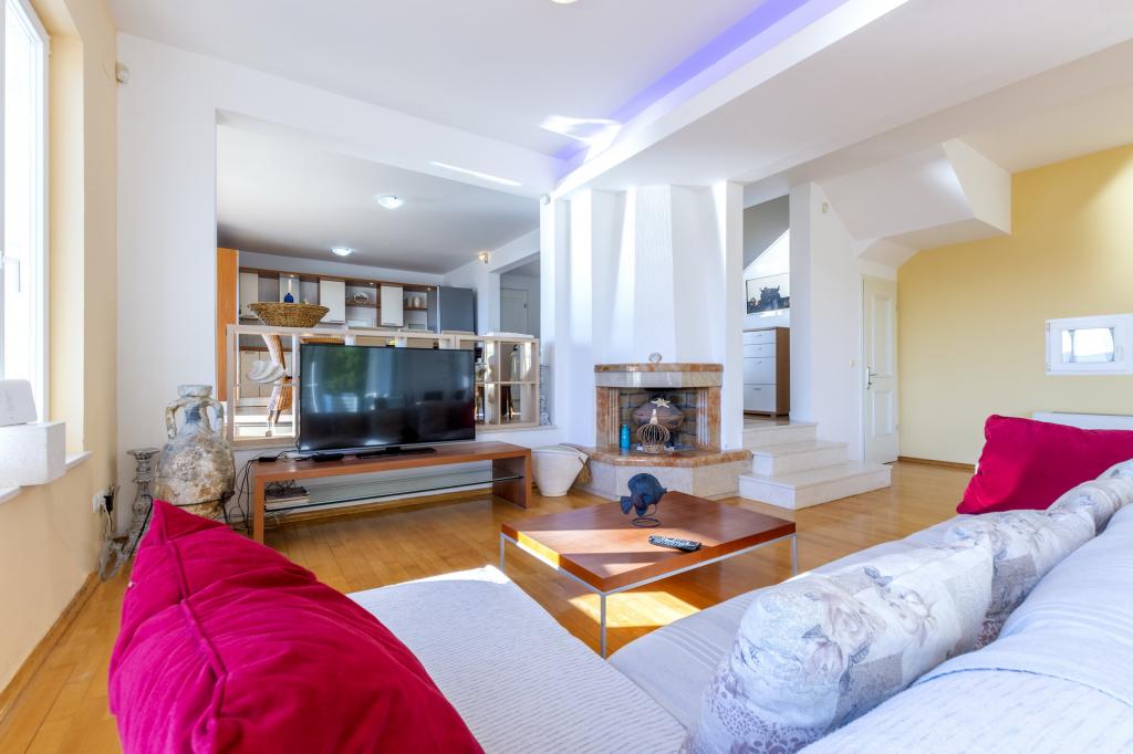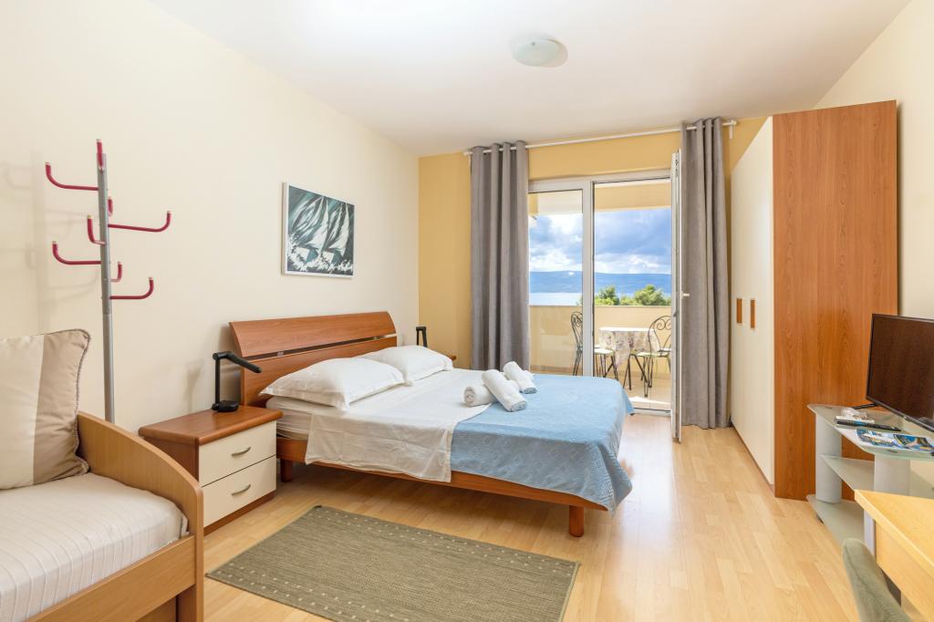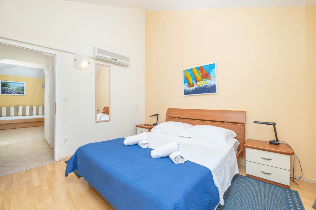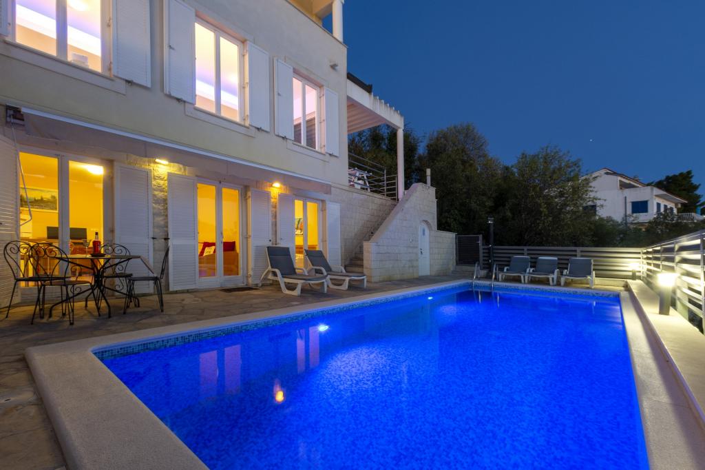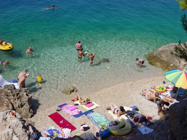 Turistskat er inkluderet i prisen.Hver af vores gæster bliver mødt med en velkomstdrink ved ankomsten. Vi kan også leje en båd eller speedbåd til alle vores gæster, arrangere rafting på Cetina-floden, udflugter til øen Brač osv. Alle lejligheder kan benytte den udendørs grill. Parkering er tilgængelig for alle lejligheder lige ved siden af villaen. Smukke stenstrande ligger 30 meter fra villaen. Swimmingpoolen er udelukkende beregnet til brug for den store luksuslejlighed type A 14+2 (villa - separat hus), andre lejligheder kan ikke bruge poolen. Så poolen bruges udelukkende og kun af den store luksuslejlighed (villa), andre lejligheder gør ikke. Villaen med pool (stor lejlighed type A 14+2) er en separat bygning. Villaen med pool har syv dobbeltværelser, fire badeværelser med toiletter, et separat toilet, to stuer, et fitnesscenter med sauna, dart, basketballkurv osv. Alle andre lejligheder (type A 2+2, Studio +2 og A 4+2) er placeret i en anden separat bygning, som ligger 6 meter fra villaen med pool.