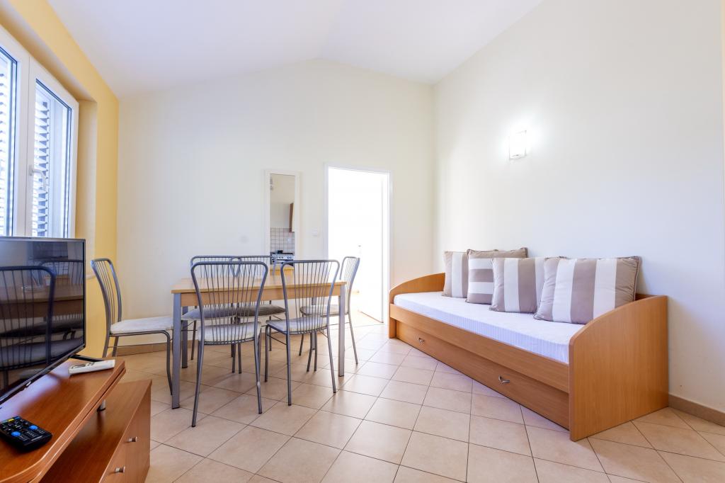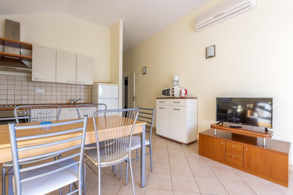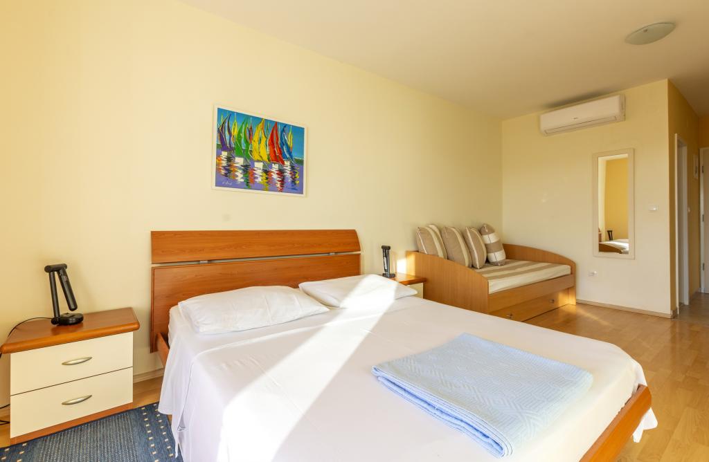 Læs mere IndkvarteringsenhederBetaling: 20% depositum ved booking, 80% resterer ved ankomst til lejligheden kontant. Depositummet betales direkte til ejerens konto. Det ideelle ankomsttidspunkt til lejligheden er efter kl. 15.00, mens det ideelle afrejsetidspunkt er indtil kl. 10.00. Villaen med swimmingpool (stor lejlighed type A 14+2) er en separat bygning. Alle andre lejligheder (type A 2+2, Studio +2 og A 4+2) er placeret i en anden separat bygning, som ligger 6 meter fra villaen med swimmingpool. Ankomsttidspunktet til villaen med swimmingpool (stor lejlighed type A 14+2) er efter kl. 16.00, mens det ideelle afrejsetidspunkt er indtil kl. 10.00. Ankomsttidspunktet til de andre lejligheder er efter kl. 15.00, mens det ideelle afrejsetidspunkt er indtil kl. 10.00. Vi har også vores egen bøje til fortøjning af fartøjer (speedbåde, både og andre fartøjer), som er placeret lige foran lejligheden.