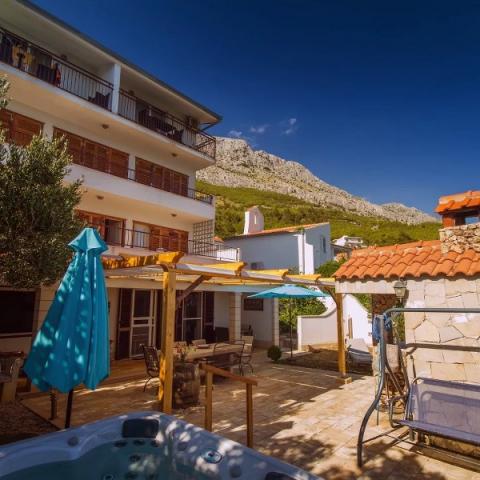 - Velkomstdrink - Jacuzzi til lejlighed 7+1. Altid varmt og rent vand. - Gratis Wi-Fi - Liggestole - TV, max-tv, satellit og radio (udendørs og indendørs) - Aircondition - Ventilatorer - Varme - Udendørs bruser, 2x - Hårtørrer - Strygejern - Espresso- og filterkaffemaskine - Vandvarmer - Mikrobølgeovn - Sengelinned, håndklæder, køkkenrulle - Babyseng - Højstol - Trampoliner, vægte - til A7 - Støvsuger - Grill og stenbord til hver lejlighed - Vaskemaskine og opvask - Udflugtsarrangement (zipline, rafting på Cetina-floden, vandreture, bådture på havet og Cetina-floden ...) - Byer i nærheden: Omiš, Split, Trogir, Šibenik, Zadar, NP Krka-vandfaldene, Makarska, Dubrovnik, Međugorje - Strandbarer med drikkevarer, mad - Vandsport - 7 strande forbundet med en promenade - Nogle af strandene har naturlig skygge - Passage under vejen til stranden - Bil parkeret ved siden af anlægget, gratis - Kæledyrsvenlig - Strand til hunde - Ideel til luftning af kæledyr - Øko-affaldssortering - Rengøringsprodukter