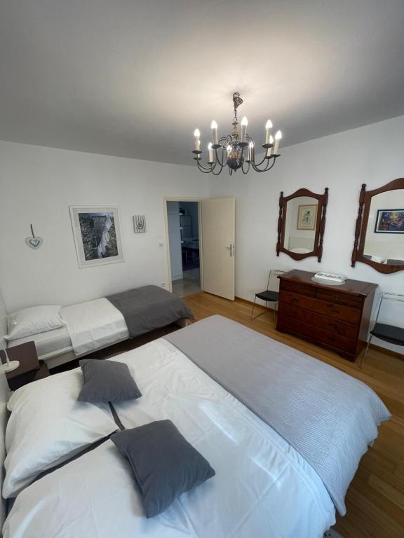 SEA VIEW lejligheder ligger i Lokva Rogoznica. De ligger i første række til havet. Smukke strande og krystalklart hav ligger 30 m væk. Parkering ved siden af huset er gratis. Den første fuldt udstyrede lejlighed (42m2) har plads til 4 personer. Balkon med vidunderlig udsigt fra anden sal, Wi-Fi, fladskærms-tv, maks. tv-programmer, radio, satellit, mikrobølgeovn, aircondition, vaskemaskine og opvaskemaskine, kaffemaskine, små husholdningsapparater, grill og stenbord ved siden af huset. Den anden lejlighed (110m2) i stueetagen med have har plads til 7+1 personer og er ideel til to familier eller grupper. Der er en varm og ren jacuzzi til 6 personer i haven. Den 190m2 store have giver dig mulighed for at slappe helt af. Haven og lejligheden vender mod syd, og du kan nyde havudsigten, solen, liggestolene og hydromassagepoolen. Lejligheden har 3 soveværelser, et stort badeværelse plus et udendørs toilet, en stue, et udstyret køkken samt opvaskemaskiner og vaskemaskiner samt små husholdningsapparater. Der er en passage under vejen til stranden. Jacuzzi og den sydlige del af haven er kun tilgængelige for lejlighed 7+1.