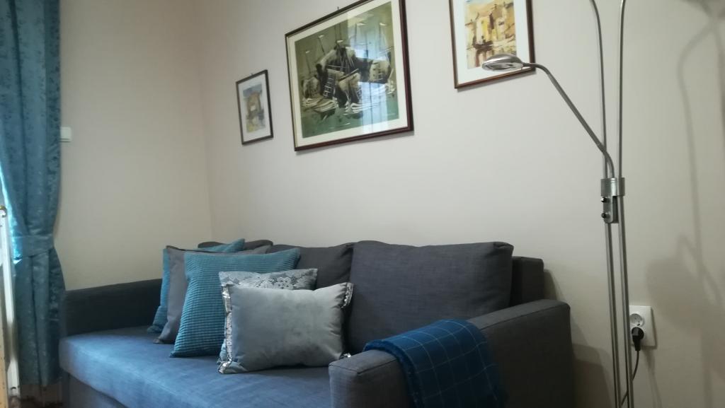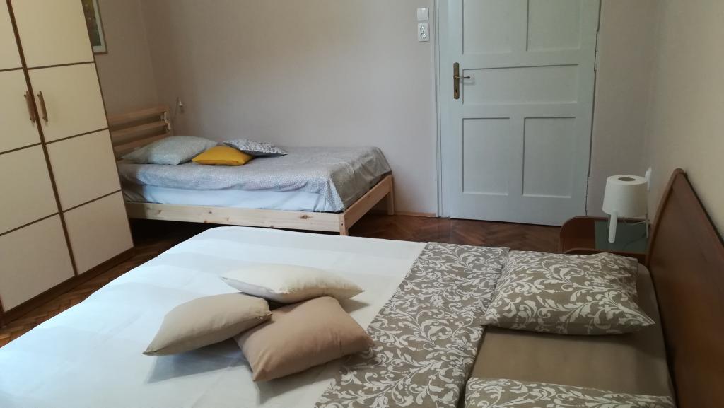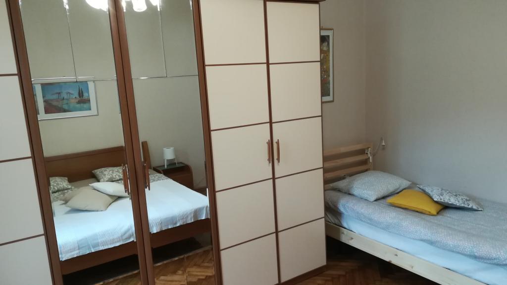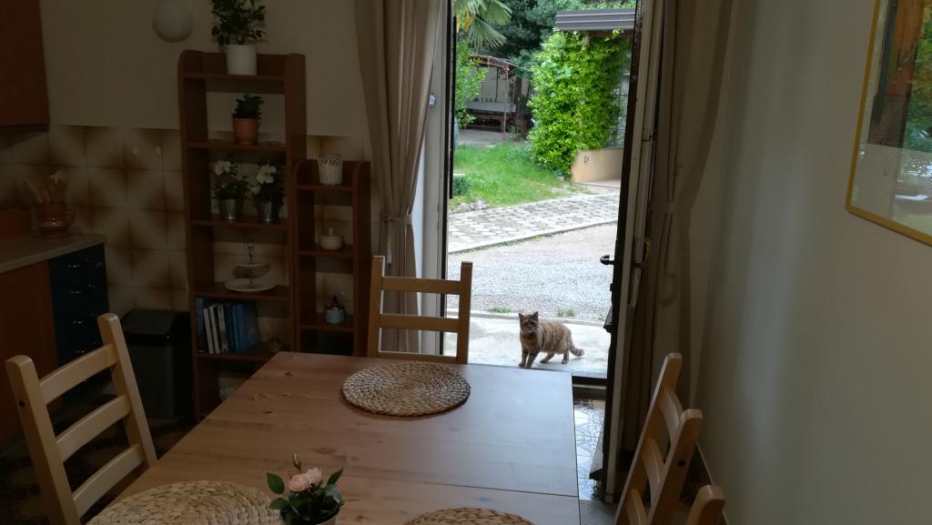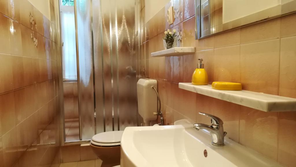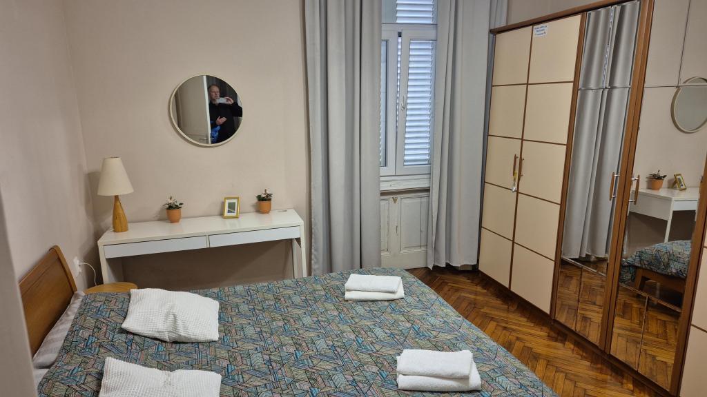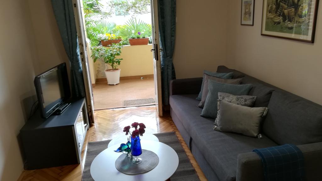 Charmerende lejlighed i en gammel villa i centrum af Opatija. Lejligheden ligger 300 meter fra havet og stranden. Den er meget rummelig og er på 58 kvadratmeter. Den har en overdækket balkon med udsigt over havet, og på den anden side af huset er der udgang til haven, hvor man også kan opholde sig, og hvor der er et bord og stole. Lejligheden er en af de få i centrum af Opatija, der har gratis privat parkering. Opatija-markedet ligger 400 meter væk, og Spar-supermarkedet ligger 150 meter fra lejligheden. Lejligheden har plads til maksimalt 5 personer. Soveværelset har en stor dobbeltseng og en enkeltseng. Der er en sovesofa i stuen. Køkkenet er rummeligt og fuldt udstyret.