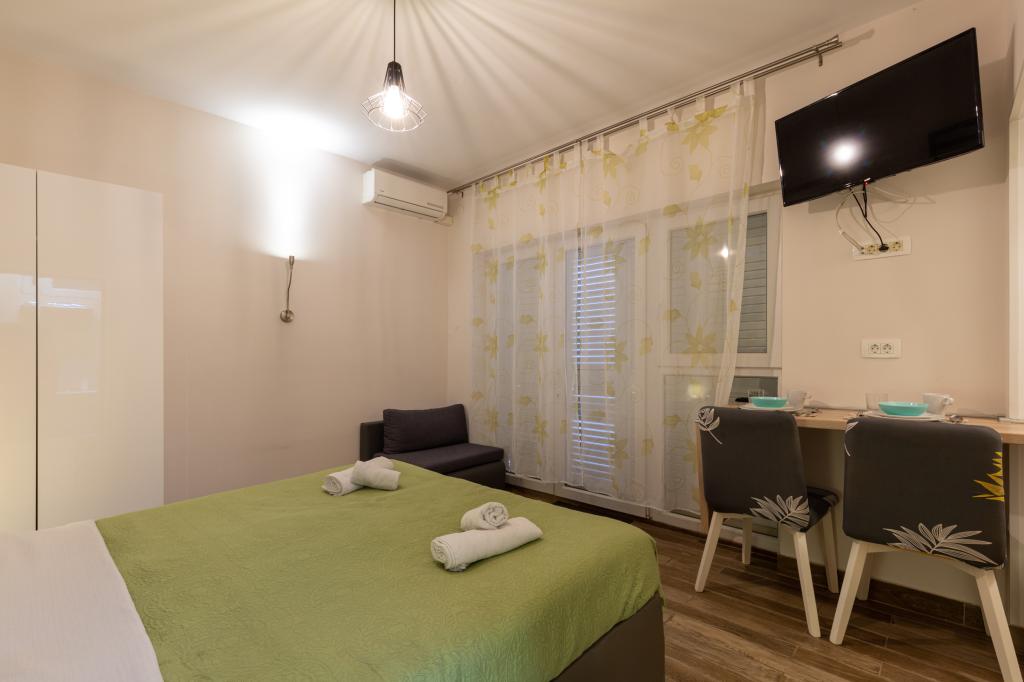 Læs mere IndkvarteringsenhederAfgangstid: 08:00-10:30 Ankomsttid: 15:00-24:00 Betaling: kontant Vi accepterer ikke kæledyr. Den tredje person i studio+1 og den femte person i A3+2 opkræves yderligere 8 EUR pr. nat. Vi tilbyder rabatter ved længere ophold!