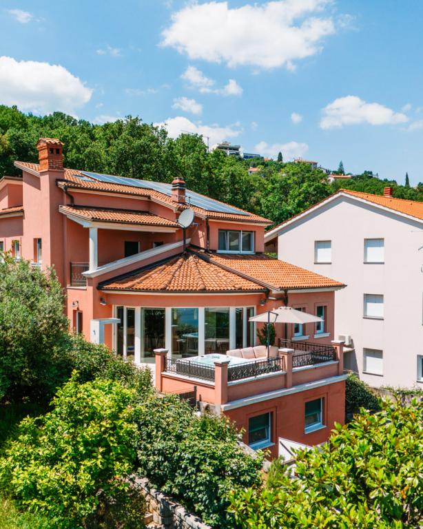 En smuk og moderne lille perle beliggende på Opatija Riviera. Huset er nybygget, så alt er næsten som nyt. Indretningen er meget smuk, og den er designet af min kone Alexandra, en indretningsarkitekt. En af de mest fantastiske ting i dette hus er den 180-graders udsigt fra terrassen til Kvarner-bugten, Istriens kyst og øerne Krk og Cres. Rent betagende. Et fotografi kan ikke formidle skønheden i udsigten. Solopgange og solnedgange er specielle, og middage på terrassen er nogle af dagens smukkeste øjeblikke. Du vil sove som en baby, for om natten er det meget stille og behageligt, og der kommer en let brise fra havet om natten. Alle værelser har aircondition. Det er også vigtigt at nævne de super komfortable senge i alle rum, og indendørs og udendørs jacuzzi og bruser på terrassen med en smuk udsigt. Opatija Riviera er kendt for sit mikro-middelhavsklima. Rivieraens byer strækker sig fra fiskerbyen Volosko, som kun ligger få minutters gang fra huset, til den smukke Opatija, som kan nås til fods. En af de ting, du skal nyde, er promenaden langs Lungomare-havet, som er omkring 15 km lang. Langs promenaden kan du finde en række små strande og små bugter, hvor du kan bade, blandet med storslåede paladser, der daterer sig tilbage til Østrig-Ungarns tid. Huset ligger ca. 400 m fra flere strande i Volosko. Vandet er meget rent og turkisblåt. Mange steder på Rivieraen ligger en kort køretur derfra og byder på mange gastronomiske oplevelser. Dagligvarebutikkerne i nærheden har et stort udvalg af mad, herunder fantastisk brød, lokale vine, råvarer og kød. Toprestauranter ligger også få minutters gang fra huset. Maden er fantastisk, især udvalget af fisk. Der er et marked for frisk fisk og grøntsager i nærheden.
