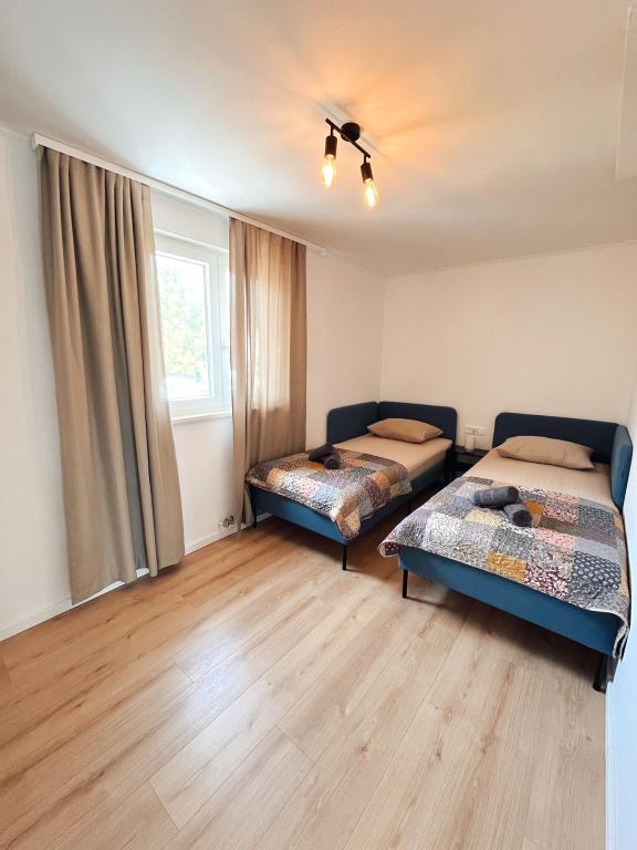 Nyd med din familie i denne moderne bolig. Huset ligger i umiddelbar nærhed af sportscentret, hovedstranden i Trstenica, bagerier, butikker, kaffebarer og er ikke beliggende i et meget roligt kvarter. Gæsterne kan benytte hele huset, som er i to etager, i stueplan er der køkken, stue og toilet, og på første sal er der 3 værelser og toilet.